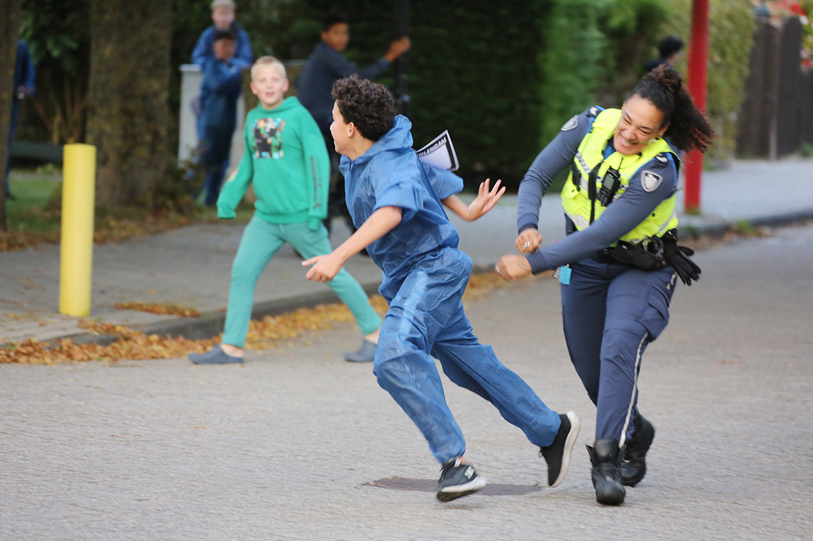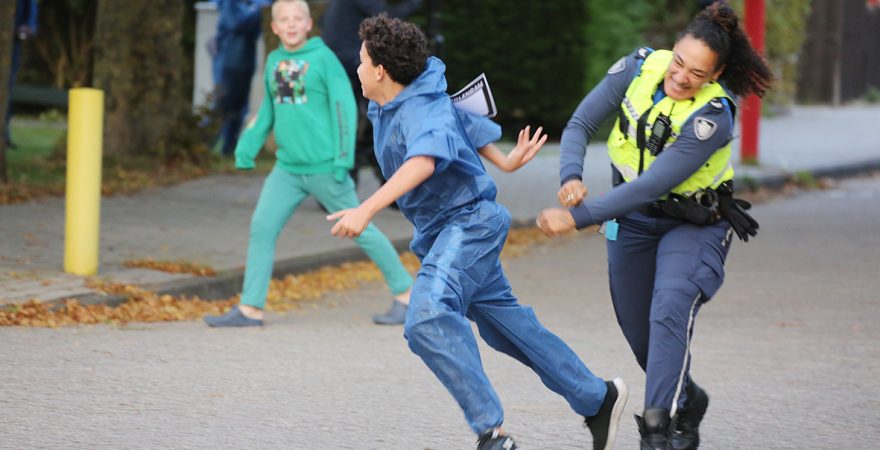 Achterna gezeten worden, de steegjes in rennen, door tuintjes heen, zelfs de sloot in en dan vaak toch omsingeld worden: 120 jongeren uit Edam-Volendam gingen donderdag tijdens De Hunt de uitdaging aan om uit handen te blijven van de politie en handhaving. Ondertussen moesten zij proberen vier stempels te scoren bij de posten, die verspreid waren in het afgebakende terrein van de Singelwijk, Middengebied en Broeckgouw. ,,Je hoopt dat ze zo een positieve ervaring krijgen met de politie.”