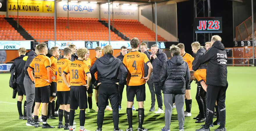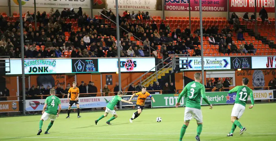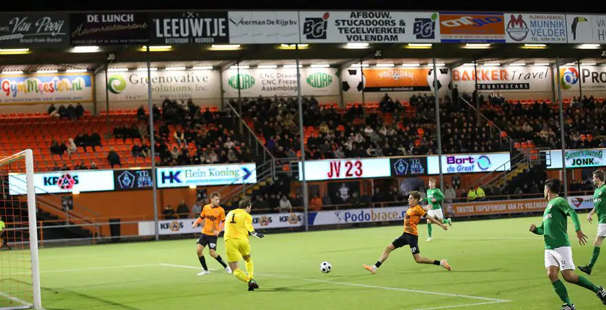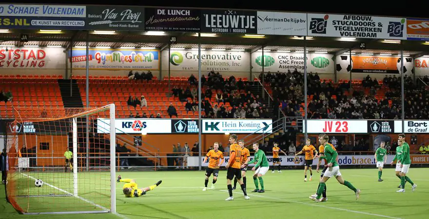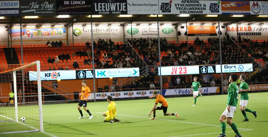Er was redelijk veel volk afgekomen op deze wedstrijd, die in het FC Volendam stadion werd gespeeld en zij zagen een goed spelend Volendam. Tussen minuut 34 en 39 werd er drie keer gescoord. Roy Tol schoot beheerst in en even later was het Daan van Baarsen die de 2-0 intikte. Jim Beers maakte nog voor rust de 3-0.