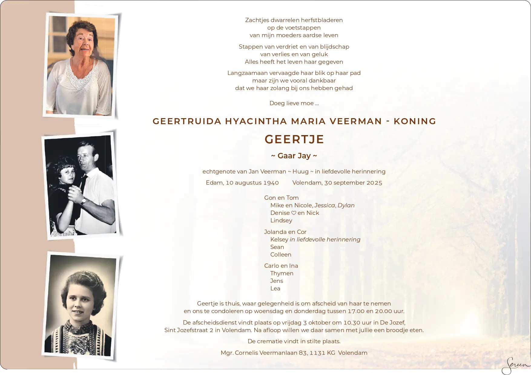 Echtgenote van Jan Veerman (in liefdevolle herinnering)