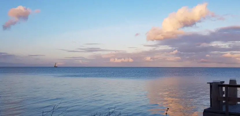 Verhaal bij de foto: Op zondagavond terwijl het laatste schip de haven had verlaten, verschenen er mooie roze wolken. En wat een stilte ter hoogte van Spaander, terwijl het havenfeest bezig was aan de andere zijde van de haven.