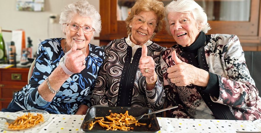 Voordat de maaltijden officieel werden gelanceerd, gingen ze langs een kritische testgroep: de eigen familie. ,,De tantes van de grondleggers van ons familiebedrijf hebben geproefd,” vertelt Sandra. ,,Tante Elly, tante Bep en tante To. Alle drie wonen ze nog zelfstandig en koken ze zelf. Dus als zij zeggen dat het goed is, dan weet je genoeg.” De uitslag was unaniem. ,,Voltreffers,” zegt Beppie. ,,Overheerlijk. En ze vonden het ook nog eens hartstikke leuk om te doen.”