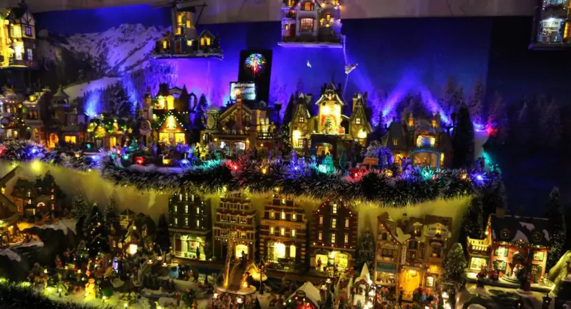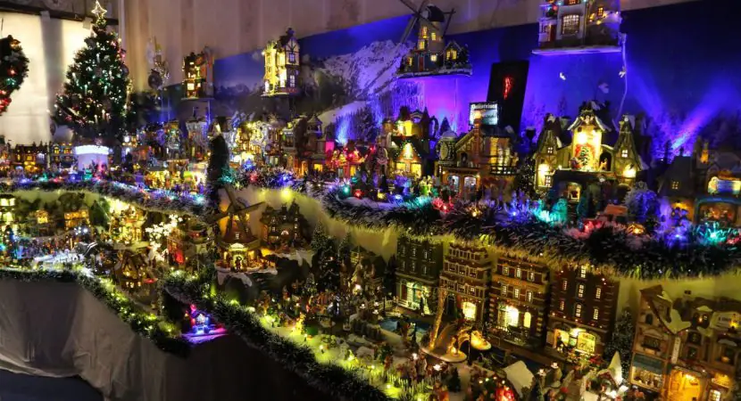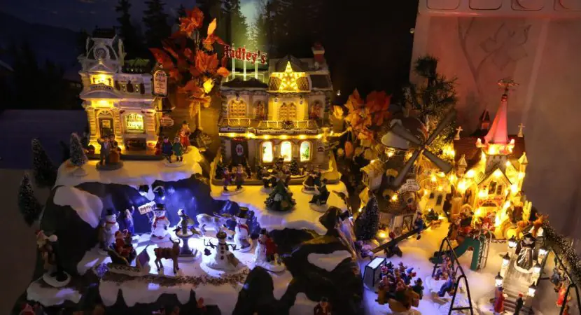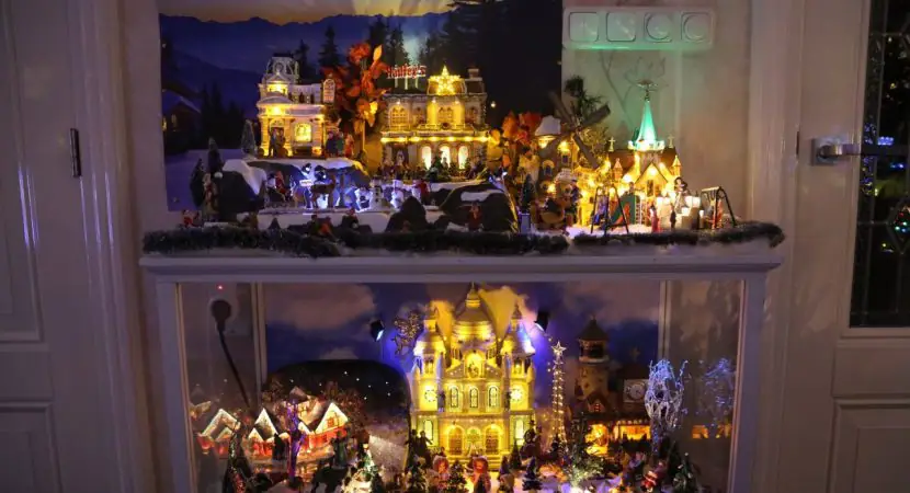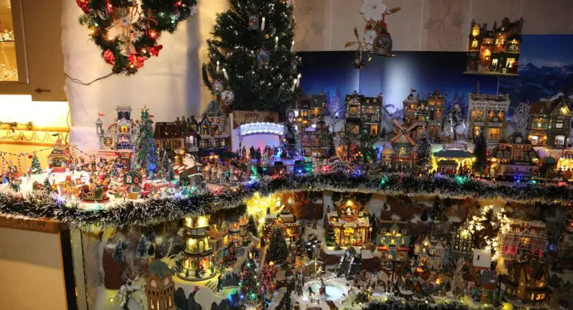 Aan de opbouw ervan heeft hij twee weken gewerkt. Een hele wand wordt gevuld met in totaal 120 kersthuisjes van Lemax. Ook twee ‘kerstbomen’ zijn door Crelis gemaakt, waarin zes kerstthema’s met Lemax huisjes en poppetjes te zien zijn. Alles is schitterend verlicht met duizenden LED-lampjes.