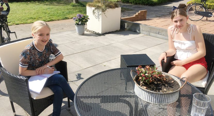 Gisteren ging de vijfde week in van ‘Onderwijs op afstand’. Pionieren, in een tijd waarin de verveling bij kinderen kan toeslaan, de huiselijke druk wellicht toeneemt en tegenover spanningsvelden helaas nog geen toegang tot sportvelden staat. Gelukkig zorgen de goede weersomstandigheden voor verlichting. Het kind moet kind kunnen zijn, maar wordt gevraagd zich als volwassene te verplaatsen in de gevolgen van een mondiale crisissituatie. Ouders wordt onbedoeld gevraagd op gezette tijden de rol van leerkracht over te nemen, dan weer los te laten in situaties en dan weer te stimuleren. Gezinnen hebben kinderen van verschillende jaargangen en niet in elke woning huizen meerdere apparaten waarmee online-les kan worden gevolgd. Vanuit lege klassen of thuis stellen leerkrachten alles in het werk de kinderen naar de volgende jaargang te loodsen. Onwetend hoe lang het nog duurt. En de kinderen zelf: de één gedijt goed in de huidige situatie, de ander mist structuur. Linda Kemper (Petrus, groep 8B) en Lisan Molenaar (groep 8A) beantwoorden enkele vragen en Lisan legde enkele andere leerlingen vragen voor (zie onder).