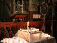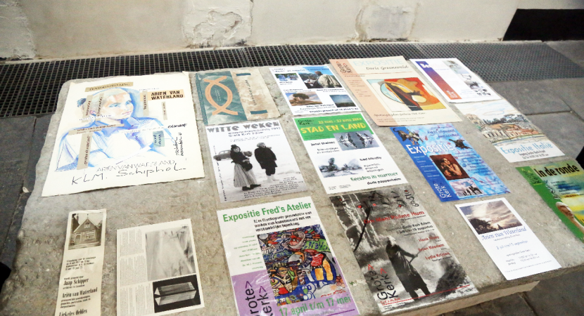 Een kleine groep vrijwilligers bestaande uit Helma de Vries, Annelies Koning, Tiny Janssens en Jan van Baar heeft nu het initiatief genomen om van deze werken een overzichtstentoonstelling te houden in de Grote Kerk, als een hommage aan deze veelzijdige kunstenares. Onder grote belangstelling vond zaterdagmiddag om 16.00 uur de opening van de expositie plaats. Hierbij werden door Ben Visser enkele boeiende anekdotes over het leven en de werken van Ariën van Waterland verteld.