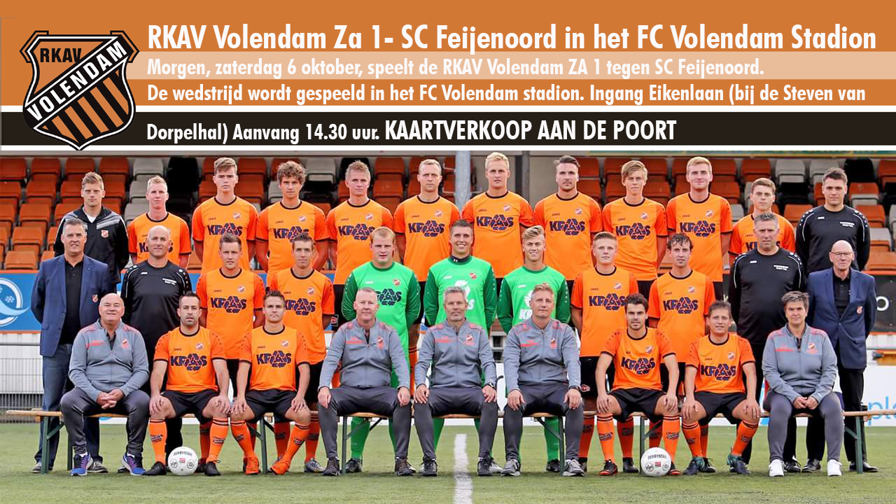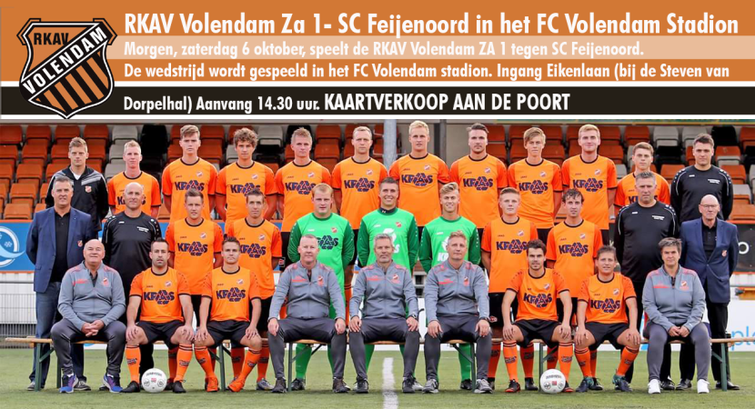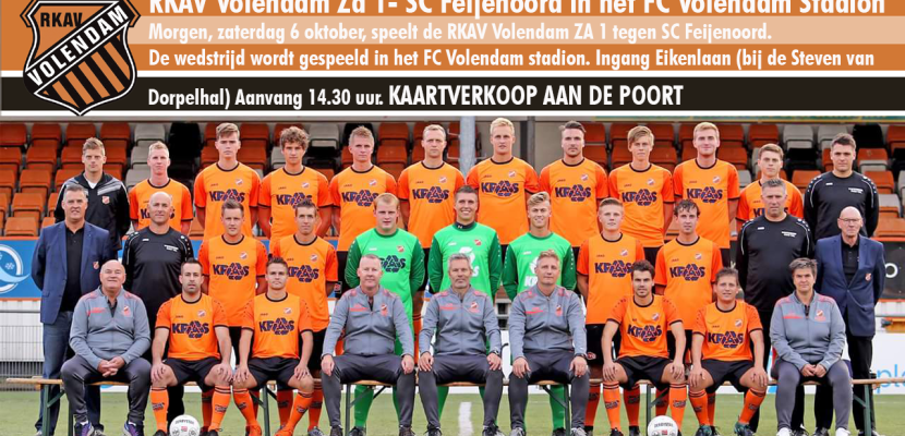 Morgen, zaterdag 6 oktober, speelt de RKAV Volendam ZA 1 tegen SC Feijenoord. De wedstrijd wordt gespeeld in het FC Volendam stadion.