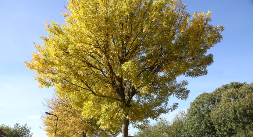 Nu de herfst is aangebroken kleuren de bladeren in de bomen geel of rood. Een mooi herfstplaatje is in de Schoklandstraat te zien, waar de bladeren aan de bomen het straatbeeld in een gele gloed zetten. Binnen afzienbare tijd zullen de bladeren weer van de bomen vallen.