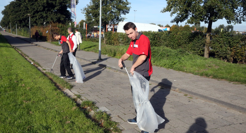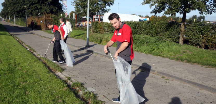 Schoonveegactie op fietspad door DIRK-team