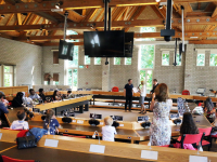 Drijvend tropisch eiland afgemeerd voor de Bukdijk