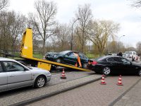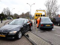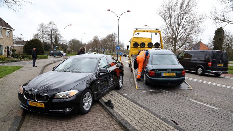 De Audi was aan de voorkant ingedeukt en de hele zijkant van de BMW was beschadigd. Met een takelwagen zijn beide auto’s weggesleept. Het verkeer werd omgeleid door de politie.