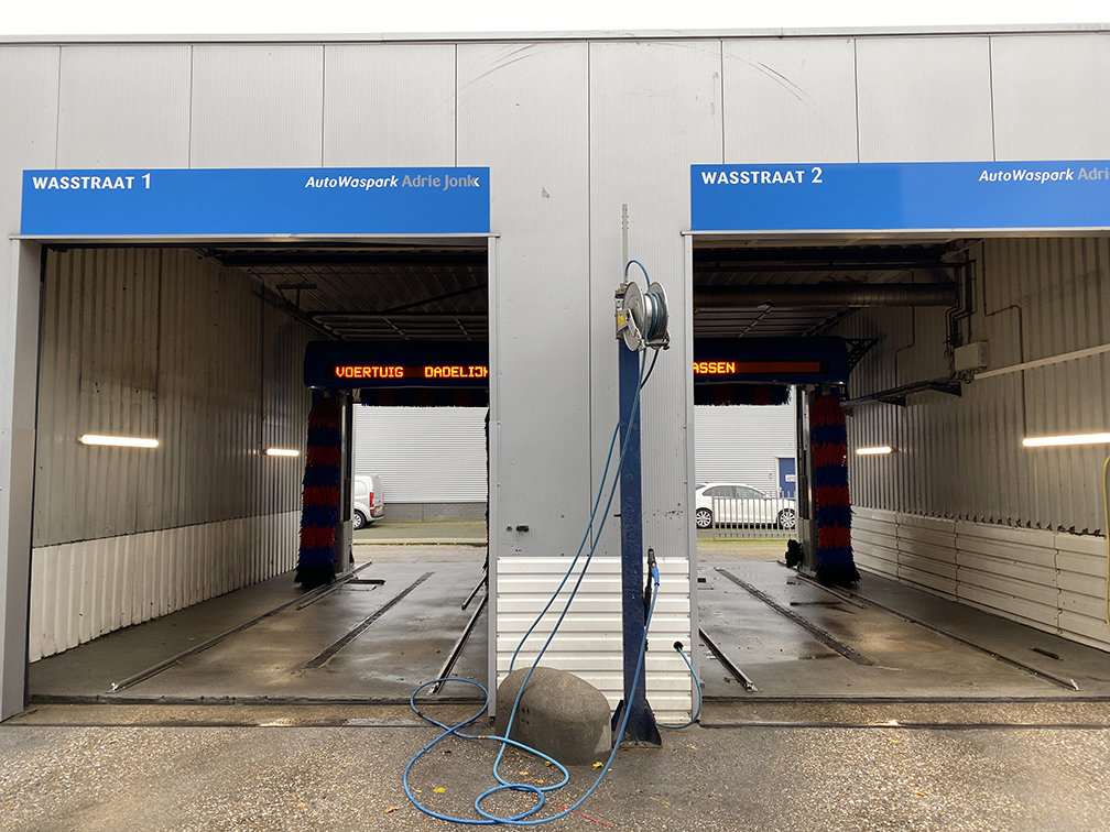 Het industrieterrein van Purmerend – dat op nog geen kwartiertje rijden van Volendam ligt – is de locatie waar de gloednieuwe wasstraat van Adrie Jonk zich bevindt. ,,We merkten dat in Volendam veel busjes rijden. Vooral ook veel verhoogde en verlengde bussen. Daarbij hebben veel van die bussen een imperiaal op het dak. Zie dan maar eens een wasstraat te vinden waar je die bussen doorheen kan rijden. Met die achterliggende gedachte hebben we besloten om onze wasstraat te vernieuwen en tevens beschikbaar te stellen voor bedrijven en particulieren. Onder meer een aantal grote bouwbedrijven uit Volendam is vaste klant bij onze wasstraten. Zij laten wekelijks hun bedrijfswagens bij ons wassen, waarna alles op factuurbasis afgehandeld wordt. Geen gedoe met bonnetjes dus na iedere wasbeurt.”