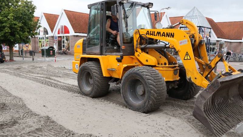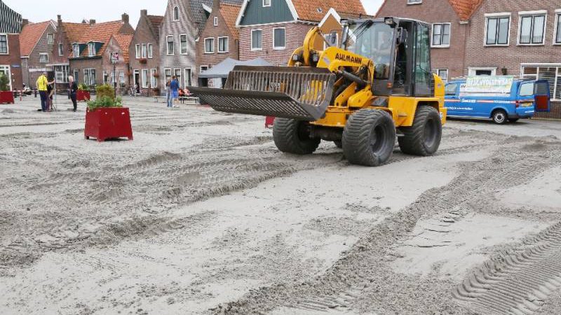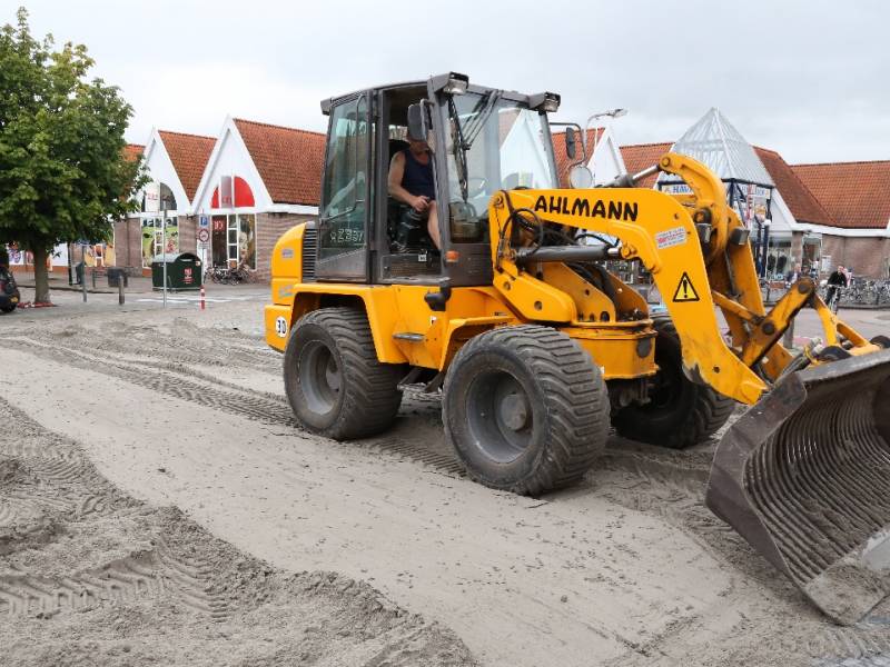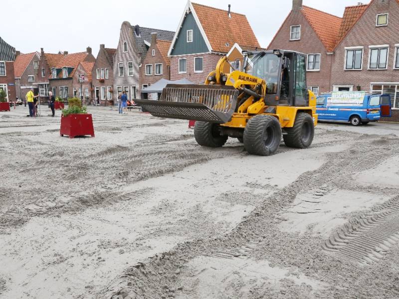 Dinsdagmorgen werd 100 kuub zand van Sierbestrating Jonk op het plein uitgevlakt door Marco van der Gracht met zijn shovel. Daarna werden de netten geplaatst en belijning aangebracht. Op dinsdag kwamen 12 bedrijventeams in actie.
