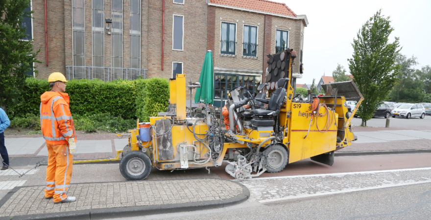 Donderdag jl. werd door medewerkers van Heijmans de belijning op het wegdek opgeknapt in de Zeestraat. Door het intensieve verkeer waren veel lijnen op het asfalt niet meer goed zichtbaar.