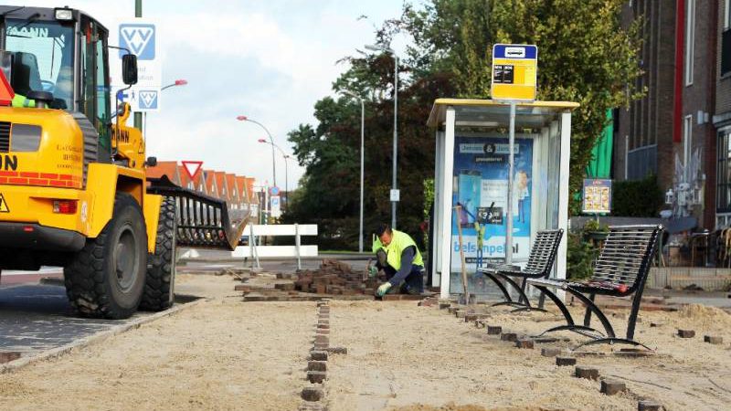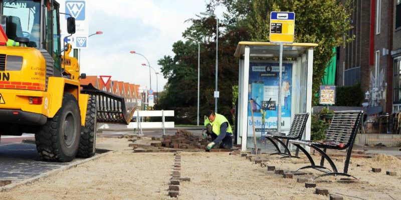 De stratenmakers van Marco van de Gracht zijn deze week begonnen met het opknappen van de bestrating van de bushalte bij de Zeestraat/Amvo terrein.