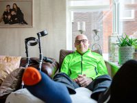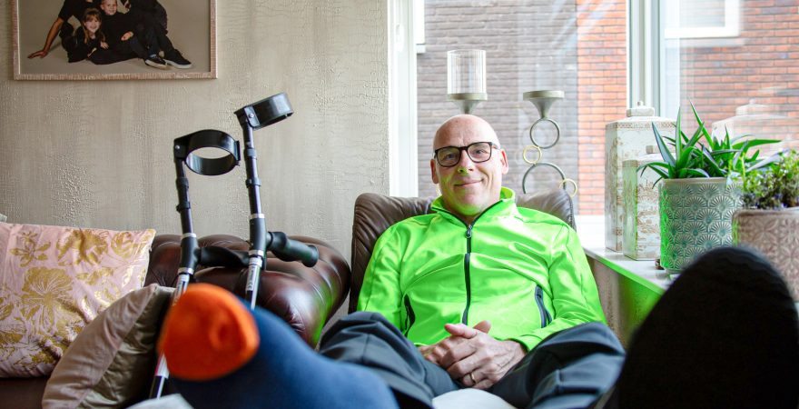 Bevlogenheid is wat Tom Sier (waffel) kenmerkte. Als zaalvoetbalkeeper in vervlogen tijden, in zijn werk én als keeperstrainer op het veld en in de zaal. Een doener, die als het even kon vier keer in de week op de padelbaan stond. Maar bij een bedrijfsongeluk, zeven maanden geleden, lag hij ineens op de grond. En moest de Volendammer zelfs vrezen voor amputatie van zijn voet. Dat laatste hoefde gelukkig niet. Hij kreeg de opdracht opnieuw vriendschap te sluiten met zijn zwaargewonde voet en na een periode vol pijn is hij onderweg voor een langdurige revalidatie. Die veel geduld vergt. Inmiddels doet hij dagelijks ‘een rondje buurt’, op krukken. Of gaat hij door de straten op zijn scootmobiel. ,,Ik moet realistisch zijn, want ik weet qua flexibiliteit niet hoe ik over een tijdje nog kan lopen. Maar ik heb wel hoop. Ook hoop op dat ik nog terugkeer op die padelbaan. Al is het in een lagere categorie.”