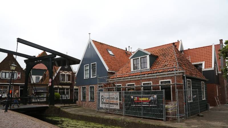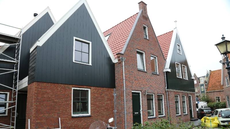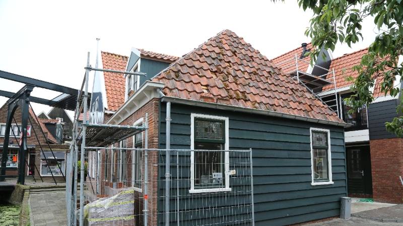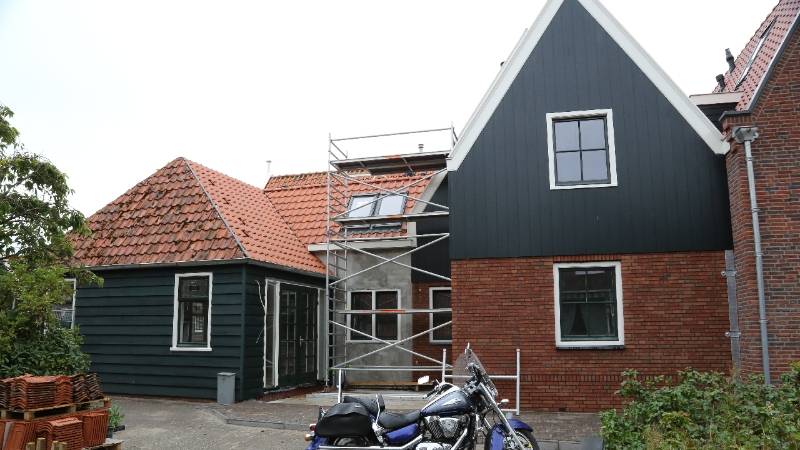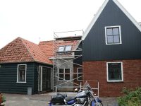 Vanaf de Edammerweg heeft men een mooi uitzicht op de nieuw gebouwde woning van de familie Schilder. De gevel van het oude huisje moest in tact blijven vanwege het monumentale karakter. Hier wordt nu de laatste hand aan gelegd.