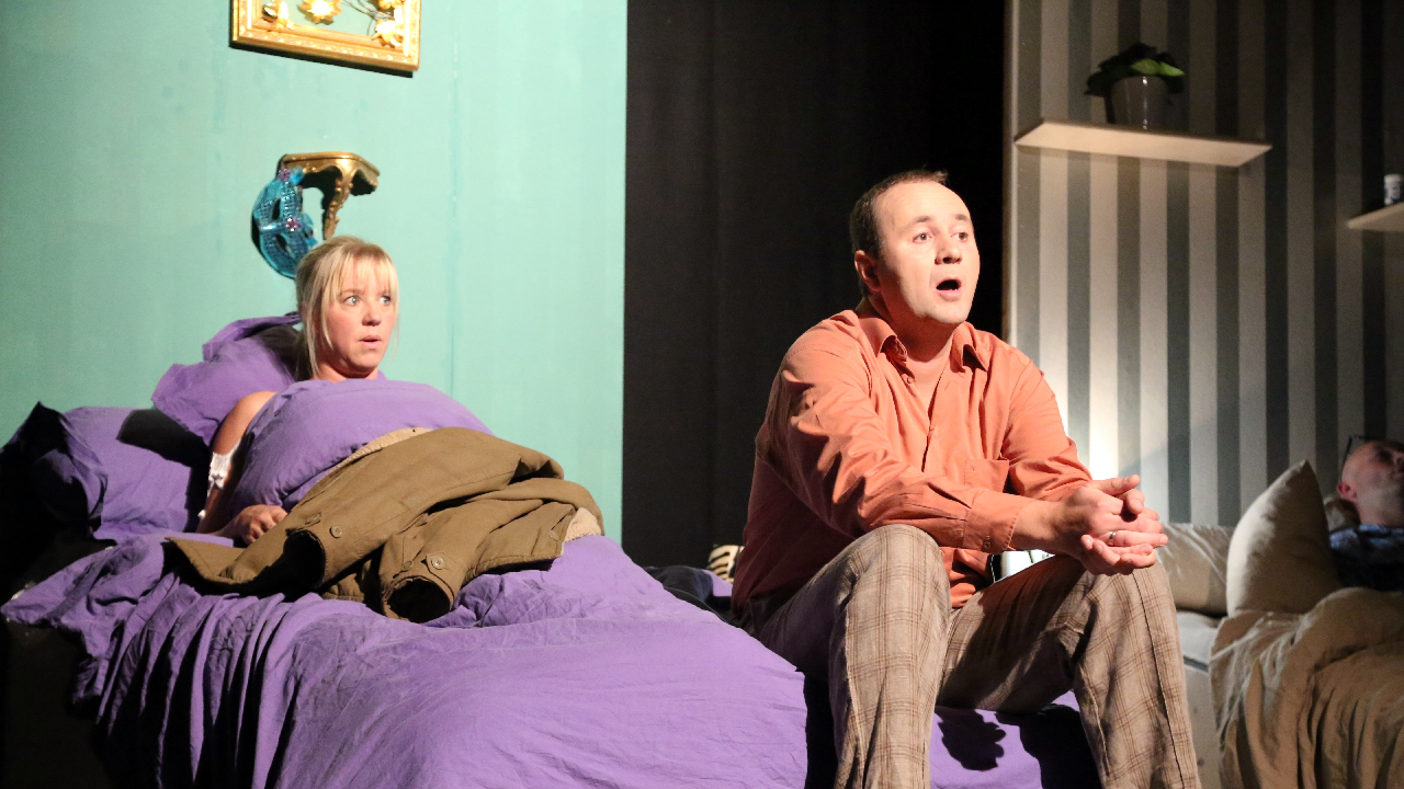 In “Bedkwartet” draait het om vier echtparen die elkaar in drie slaapkamers ontmoeten. Komische situaties doen zich voor op het toneel, waarin huwelijksproblemen van een stel centraal staan.