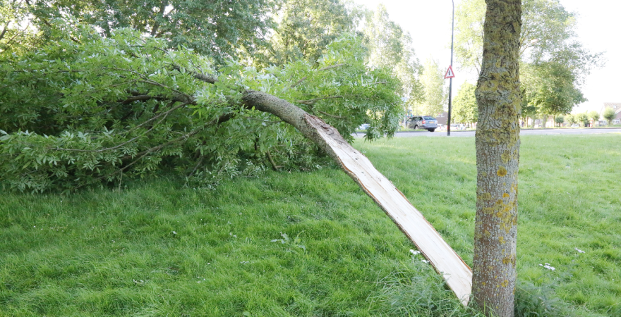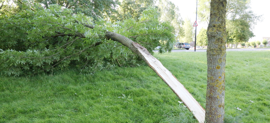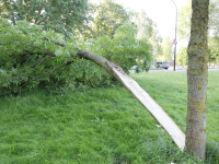 Zaterdagmiddag is een boom geveld in het Boelenspark (naast de Parkweg). Tijdens een stormvlaag werd door de harde wind een grote tak weggeblazen en door de kracht splitste de stam aan tweeën.