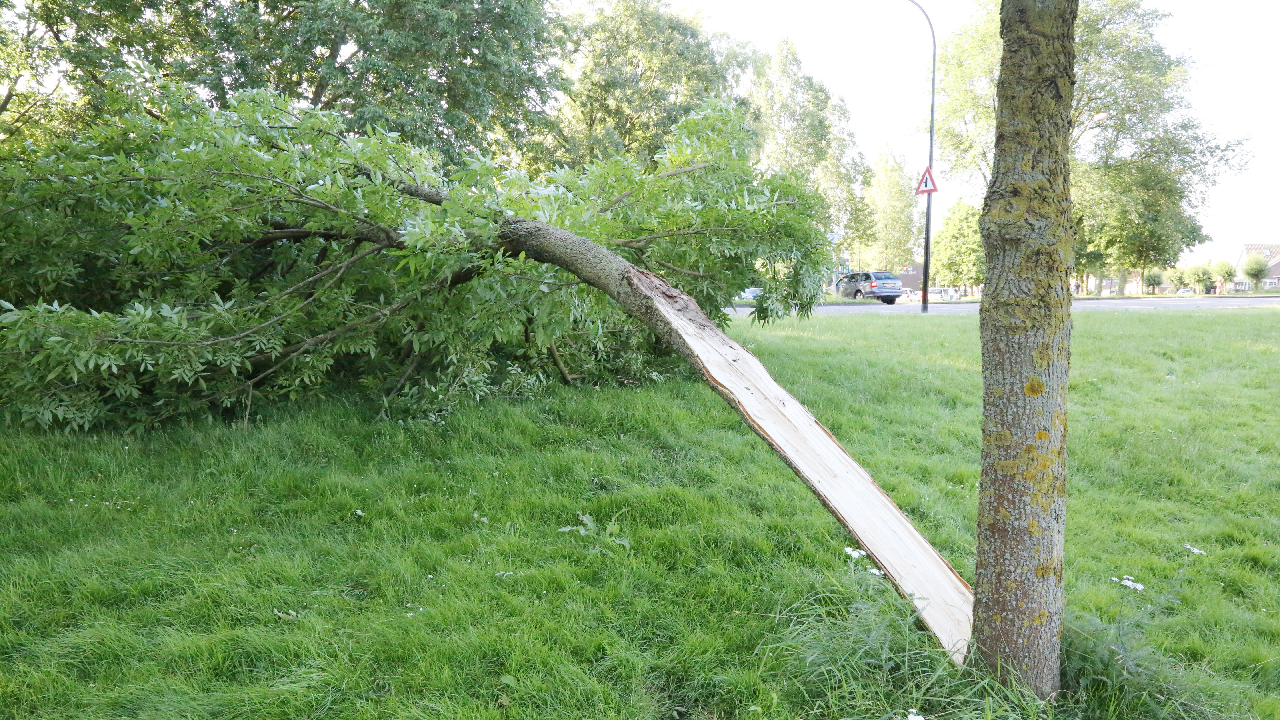 Door medewerkers van de afdeling Onderhoud & Beheer van de gemeente is het omgewaaide deel van de boom maandag weer opgeruimd. De resterende halve stam van de boom is eveneens omver gezaagd en afgevoerd.