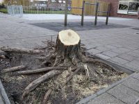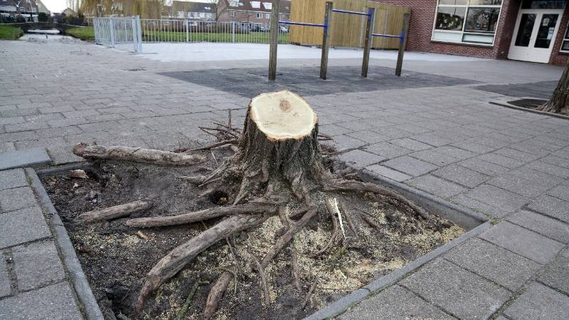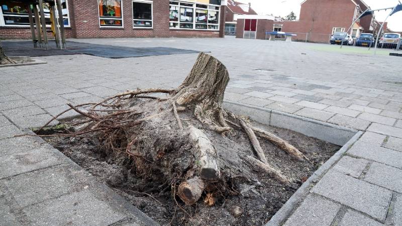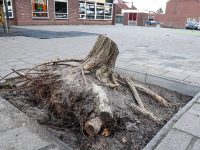 De omgevallen boom op het plein werd snel weggehaald door medewerkers van de afdeling Onderhoud & Beheer van de gemeente. Verder waren de wegen en voetpaden bezaaid met afgewaaide takken van de bomen.