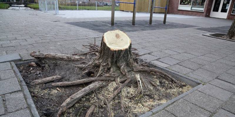 In de Leendert Spaanderlaan waaide een boom om, maar ook op het schoolplein van de Spinmolen. Daar keken de leerlingen natuurlijk wel verbaasd van op.