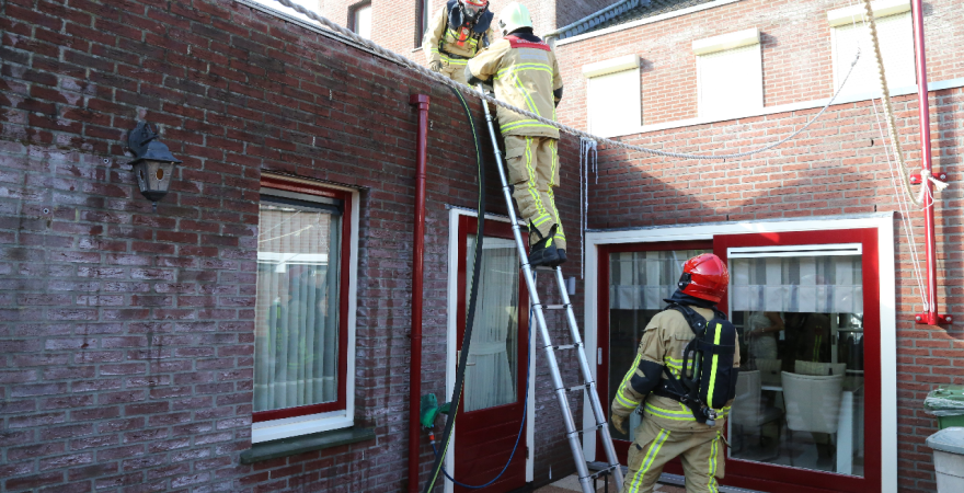 Woensdagmorgen om 8.30 uur moest de brandweer uitrukken naar de Hendrik Avercamplaan. Een dakdekker was hier aan het werk op het dak van de berging achter de woning van huisnummer 34.