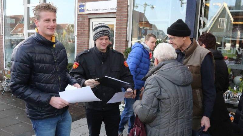 Door tien leden van de Vrijwillige Brandweer Volendam werd zaterdag vanaf 11.00 uur een actie gehouden op de wekelijkse markt en bij winkelcentrum Havenhof.