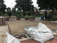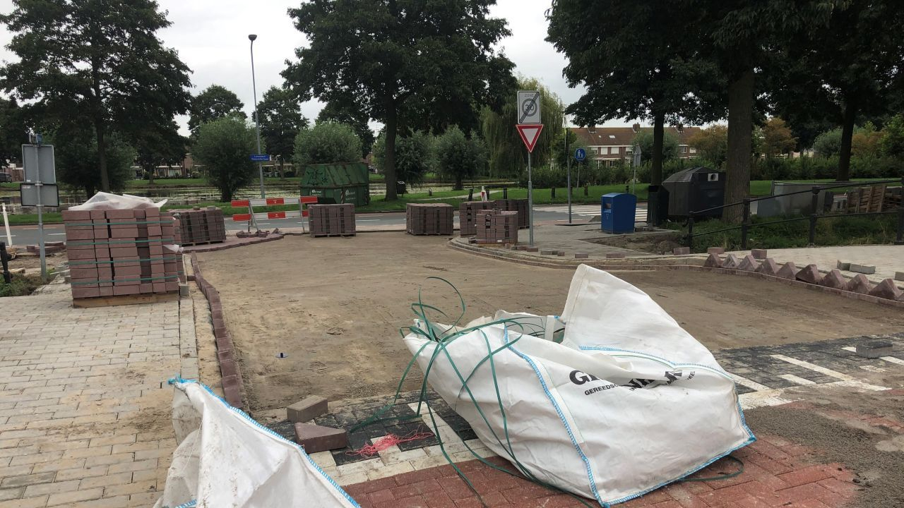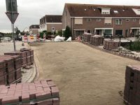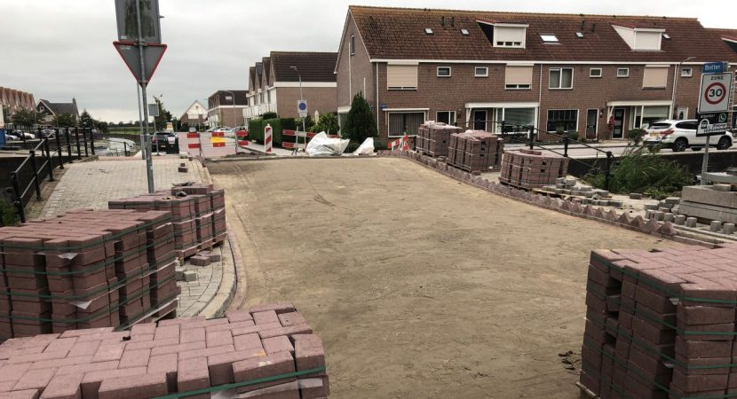 Medewerkers van aannemingsbedrijf KWS zijn vorige week gestart met het bestraten van het laatste stuk op de Blokgouw 7 en 8. De brug tussen de Botter en L. Spaanderlaan werd bestraat.