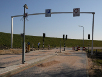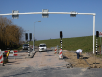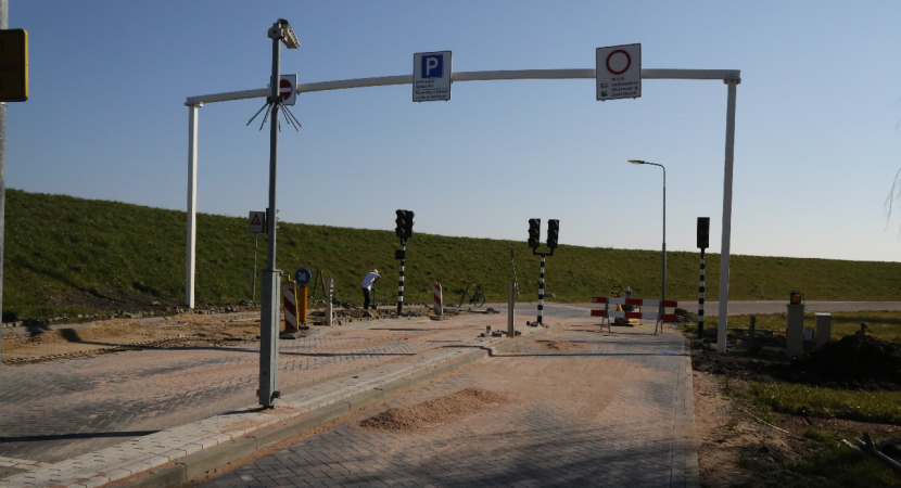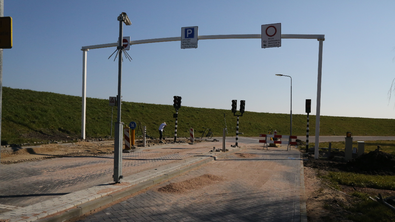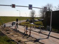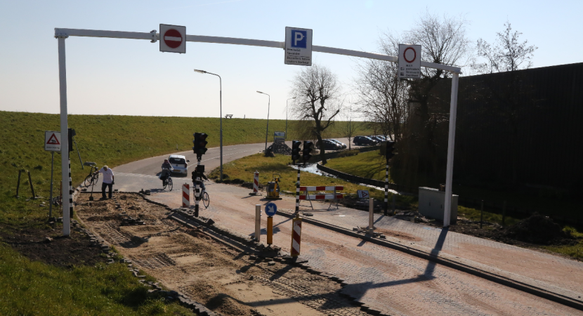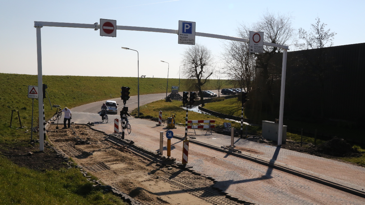 Op de Zeedijk nabij Kras Recycling is de wegafzetting, die op 26 maart weer in werking gaat. Om het kwartier wordt hier de weg richting Noordeinde afgesloten voor het autoverkeer.