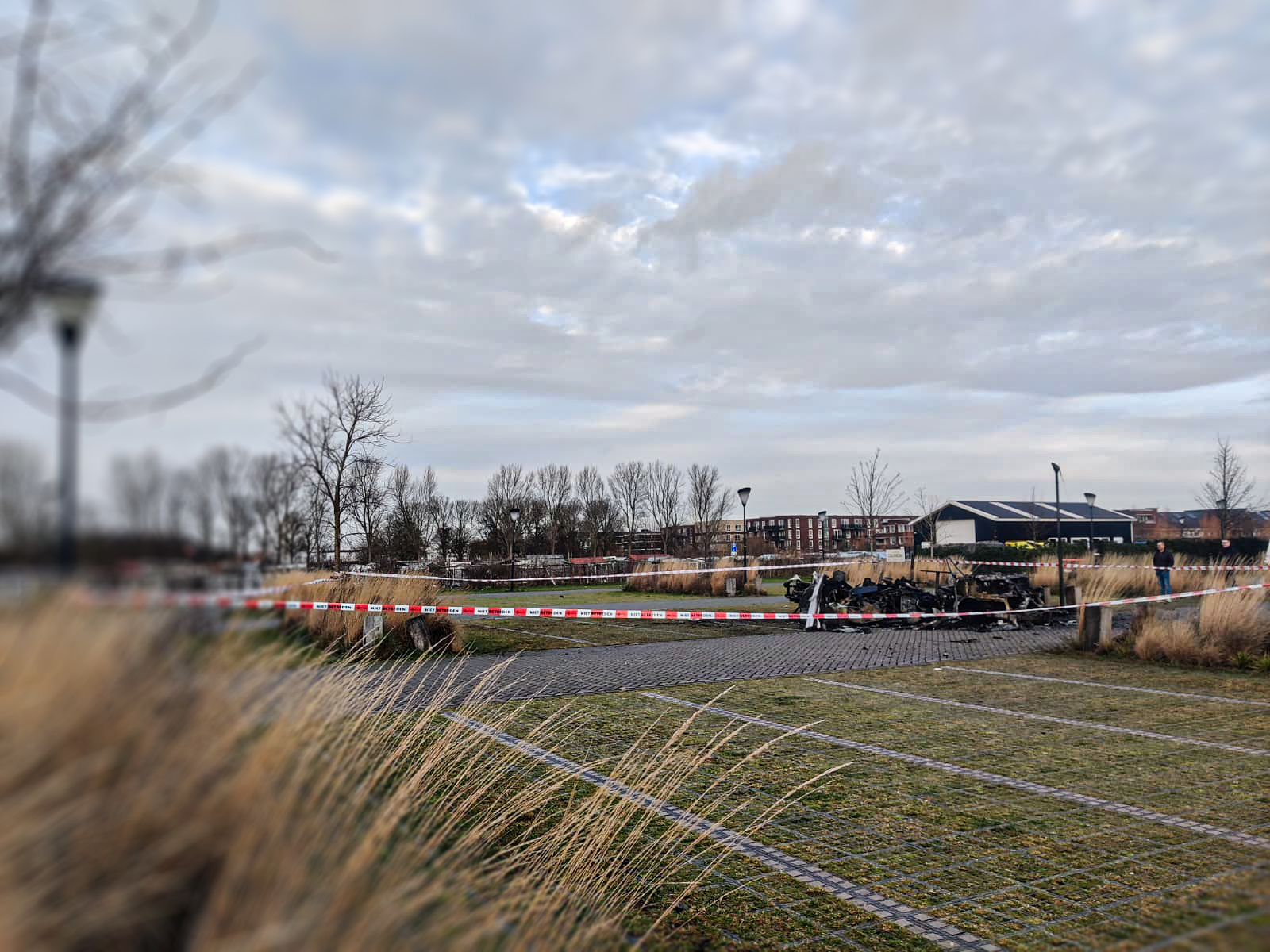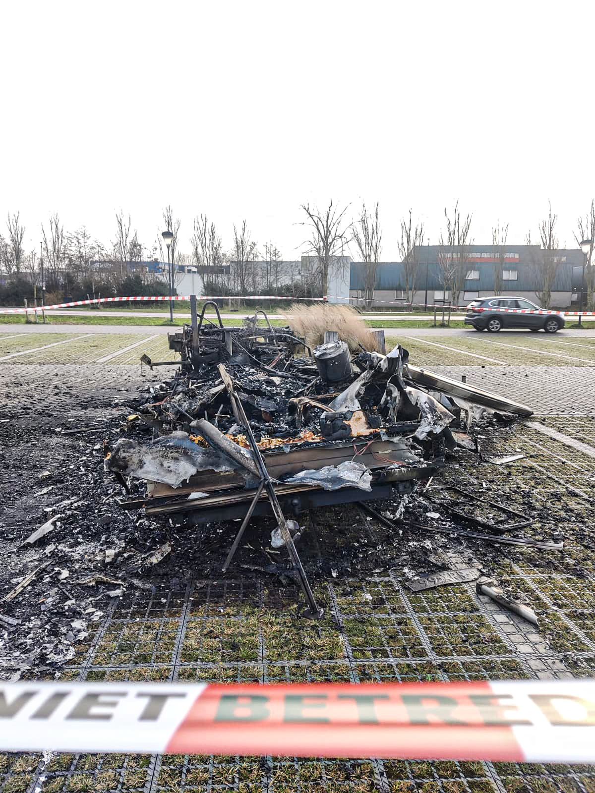 De brand ontwikkelde zich snel. Een gasfles in het voertuig ontplofte en de camper ging volledig in vlammen op. Brokstukken verspreidden zich over het terrein en de schade aan de omgeving is ook aanzienlijk. De plastic ondergrond van de parkeerplekken, een lantaarnpaal en een houten parkeerblok raakten zwaar beschadigd. De geur van verbrand plastic was later op de dag nog goed merkbaar.