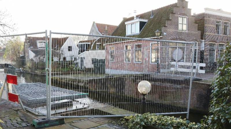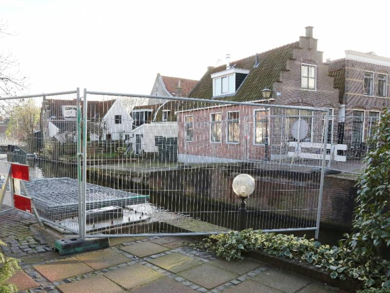 Al enkele weken is er geen doorgang mogelijk voor het verkeer over de Constabelbrug, die de Bult en Spuistraat in Edam met elkaar verbindt. De stalen brug is gedemonteerd en daarna afgevoerd voor groot onderhoud.