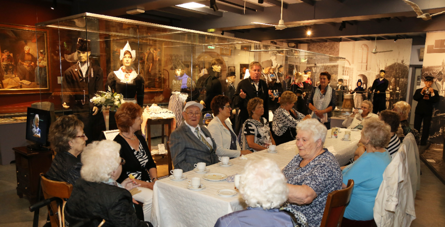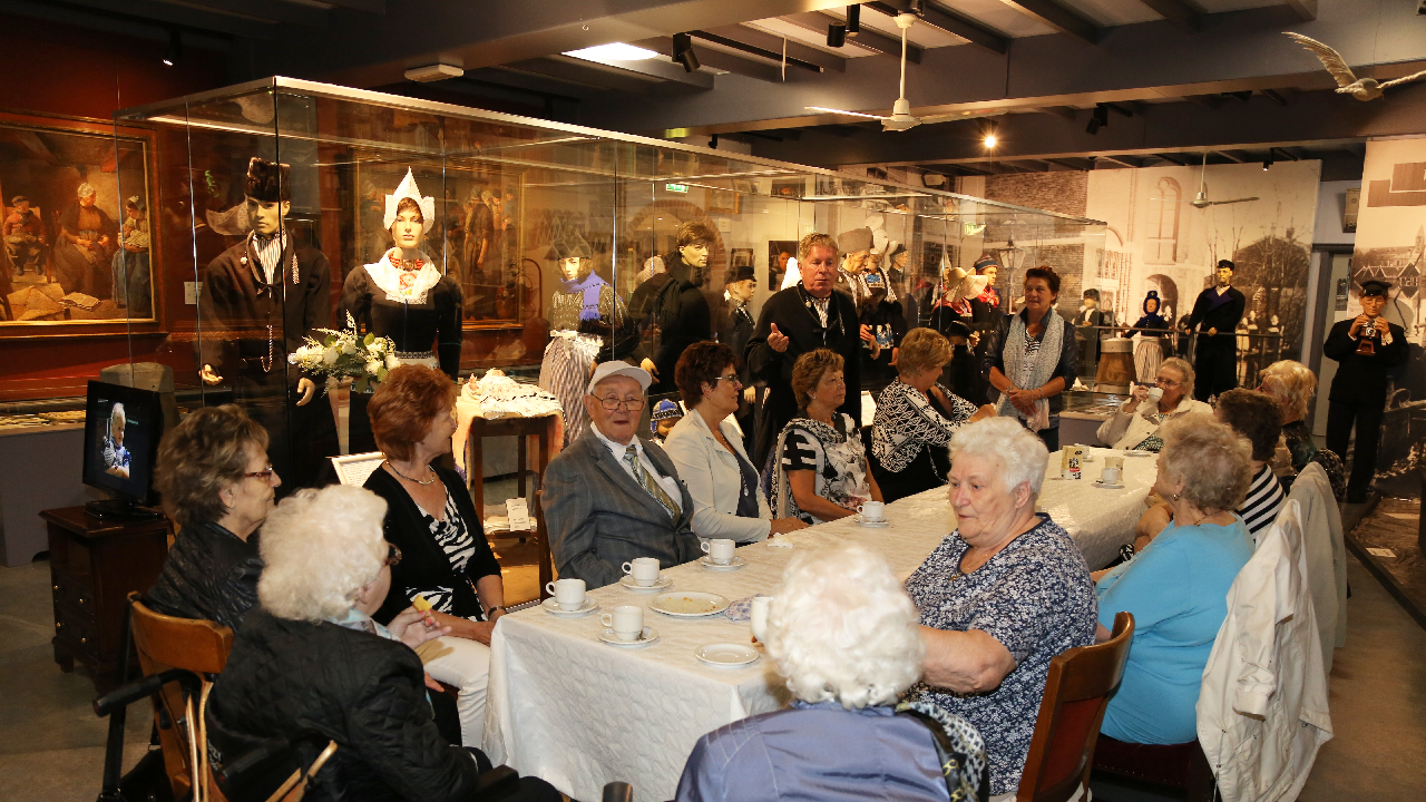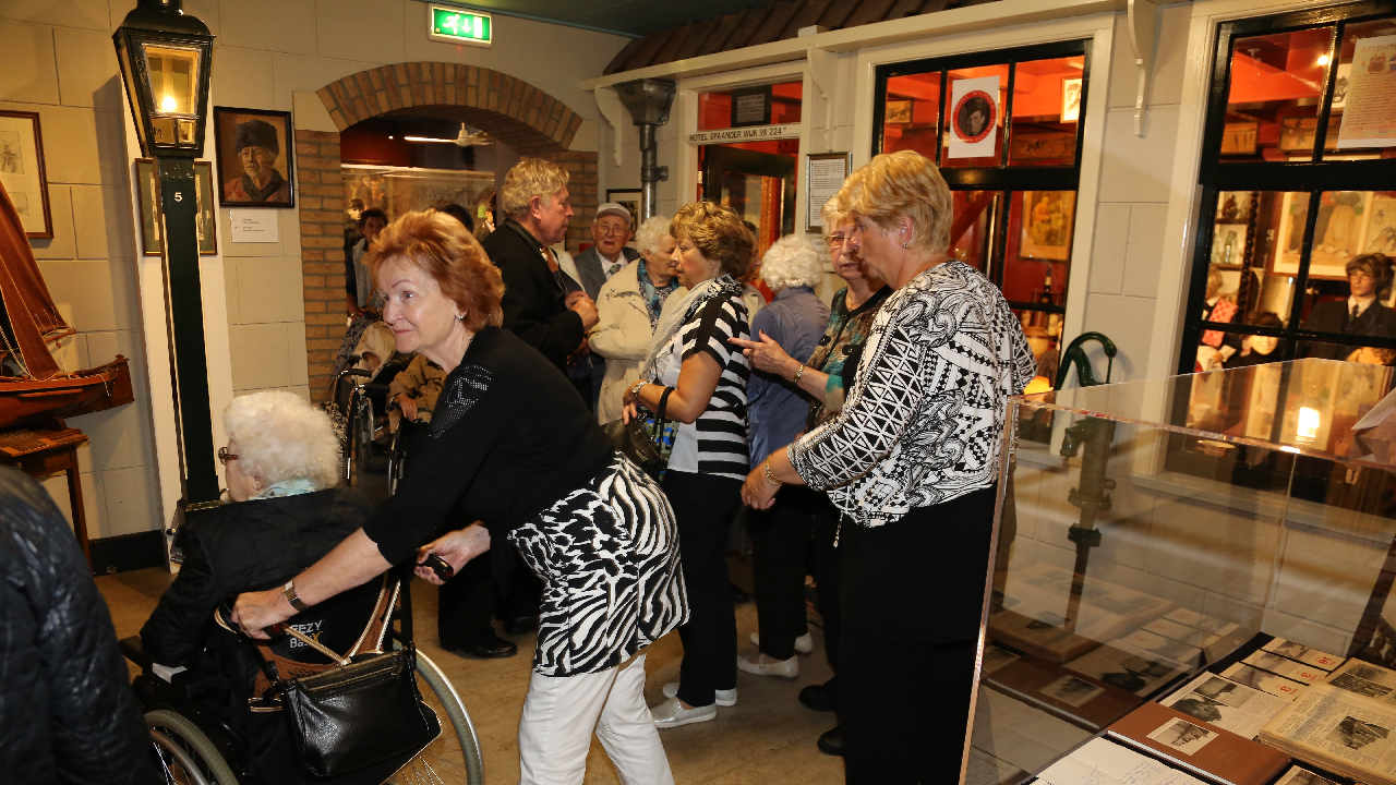 Door museumvoorzitter Wim Keizer werd over de expositie verteld. Een rondgang werd door het museum gemaakt en ook werden in de bioscoopzaal films van oud-Volendam bekeken. Het bezoek werd door het bestuur aangeboden aan de senioren die een topochtend beleefden.