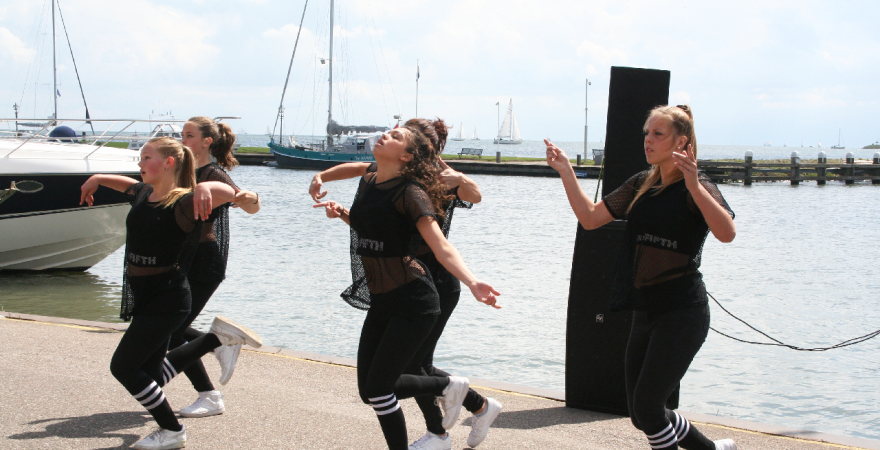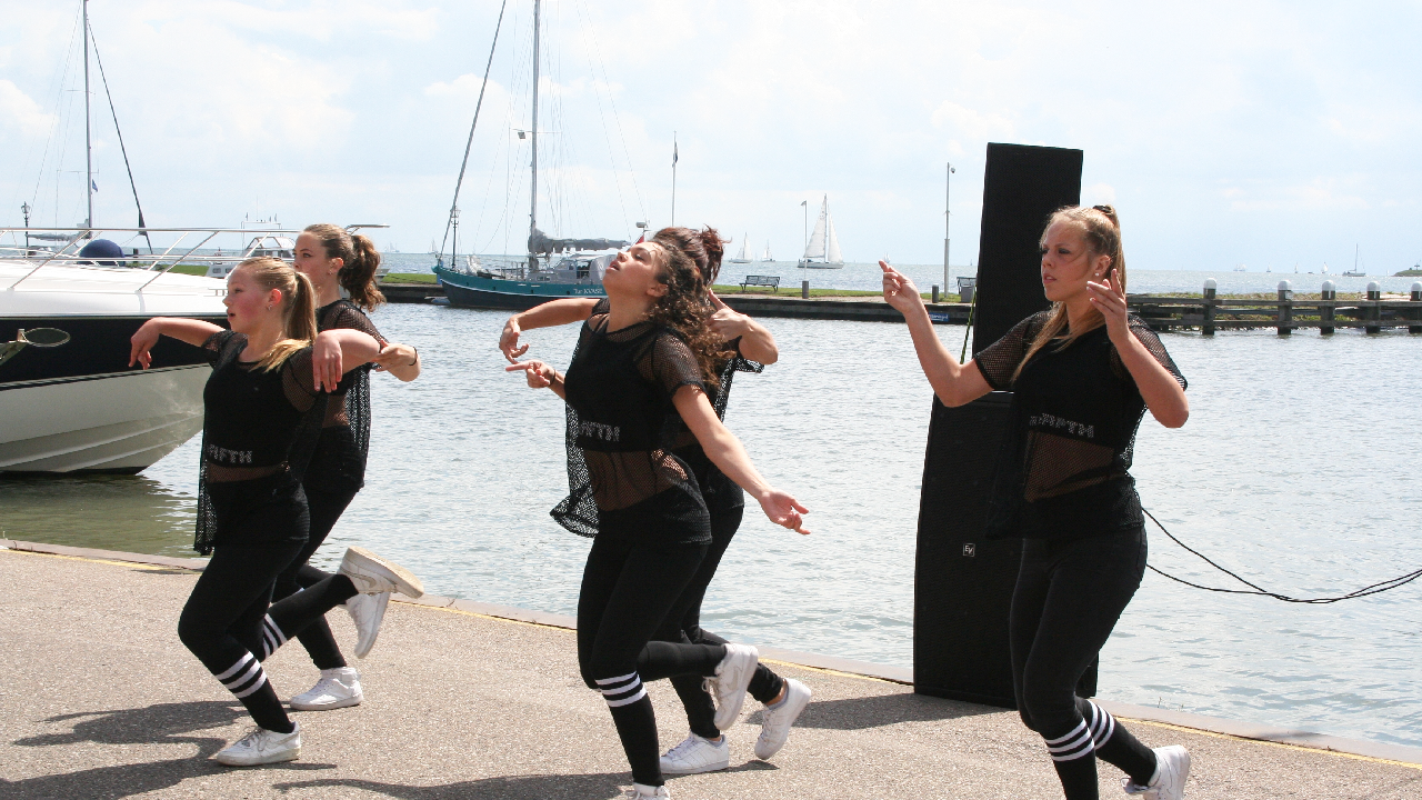 Om 11.30 uur was op de havenkade tegenover Bar De Molen de eerste dansshow. Ook de streetdancegroepen die deel gaan nemen aan het Nederlands Kampioenschap en het E.K. verzorgden enkele spetterende dansoptredens.