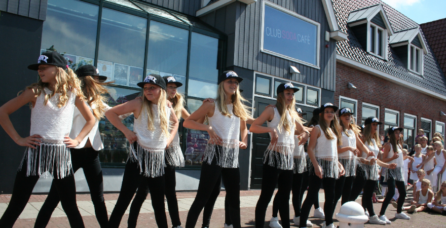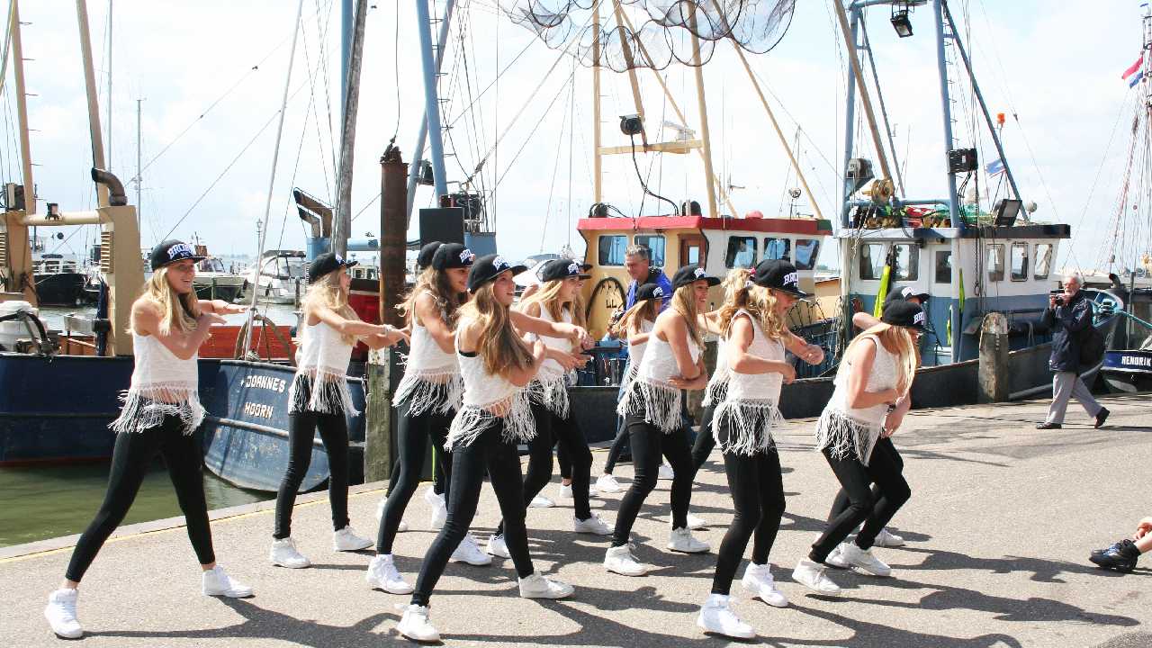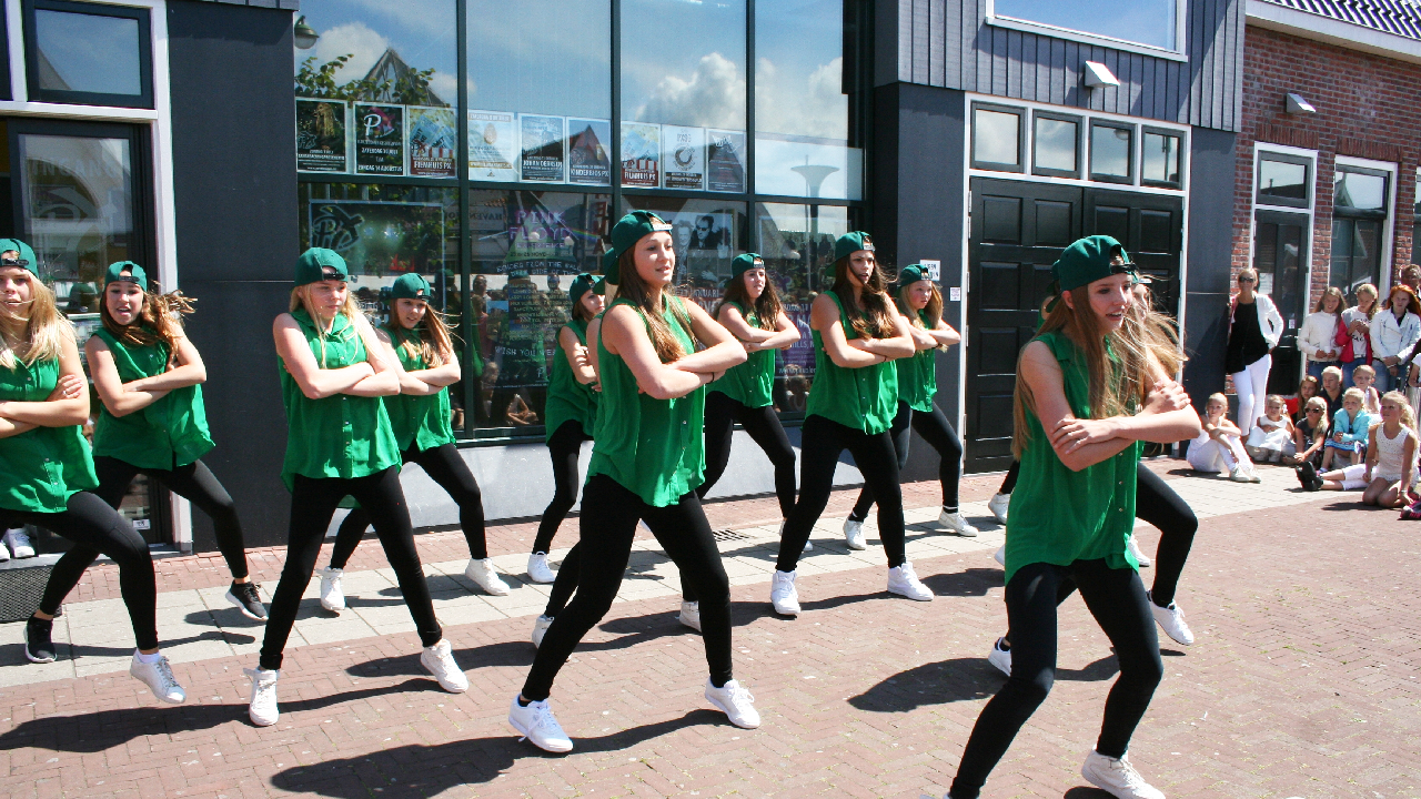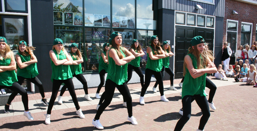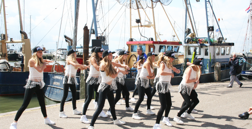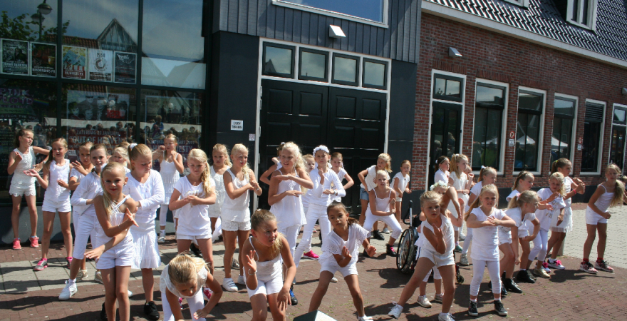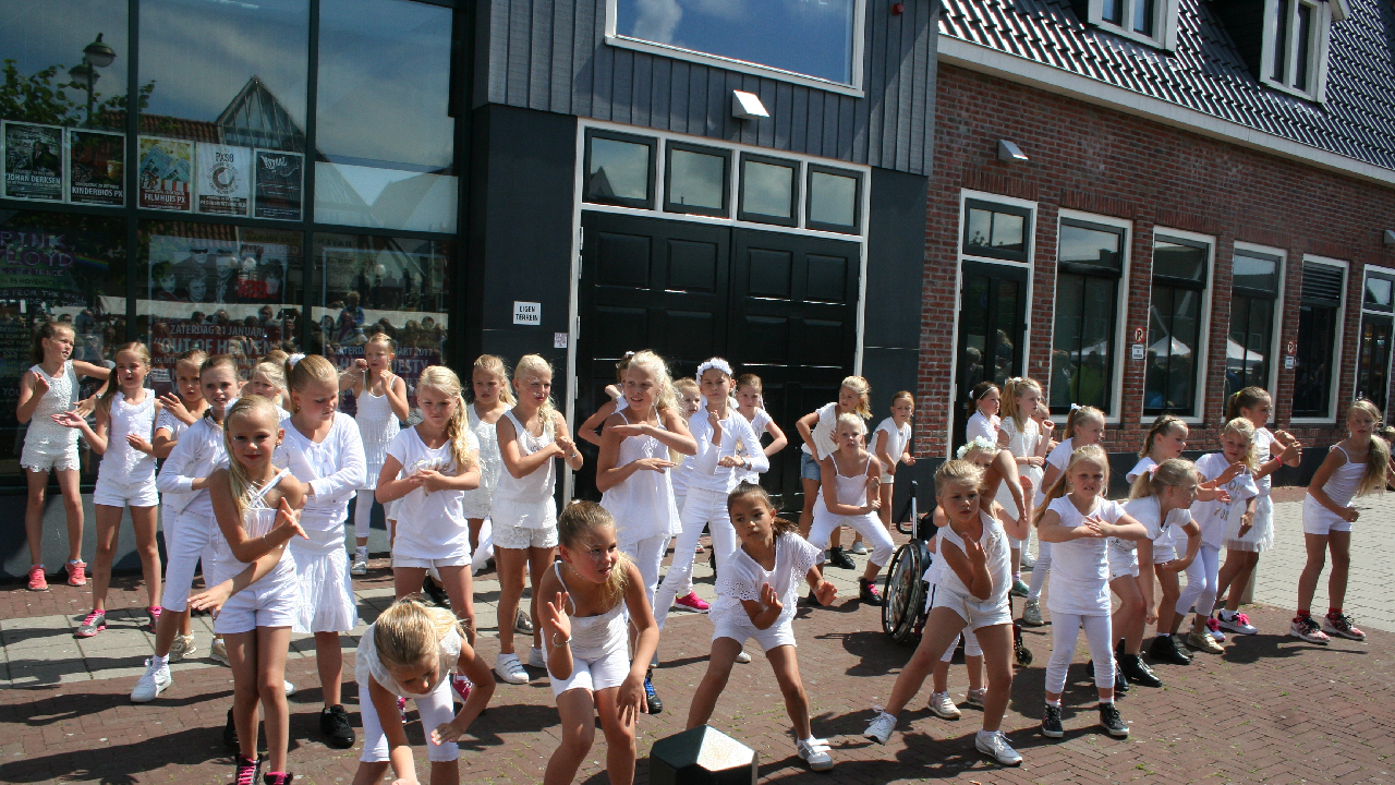 Naast optredens van bandjes, fanfares en de tamboers kon het publiek tijdens de Volendammerdag ook genieten van verschillende dansshows o.a. van groepen van Dansschool Inge Leeflang.