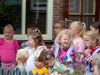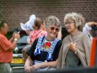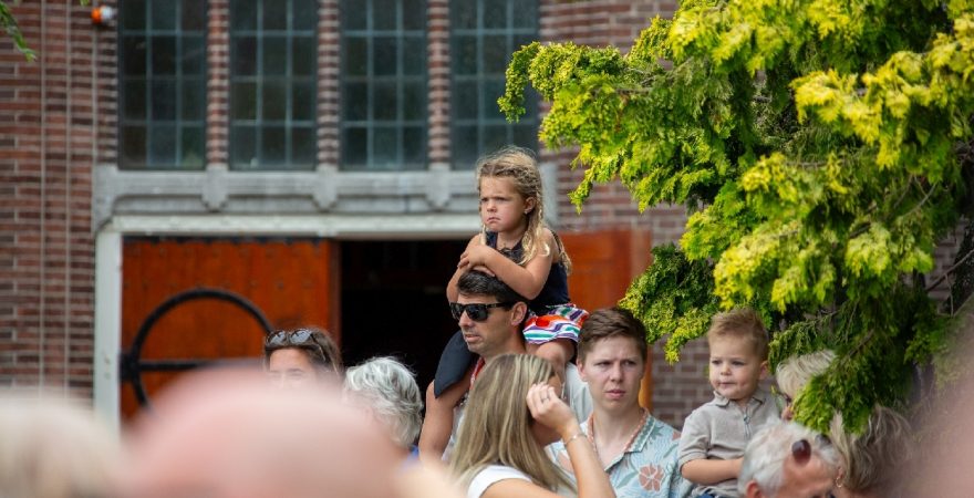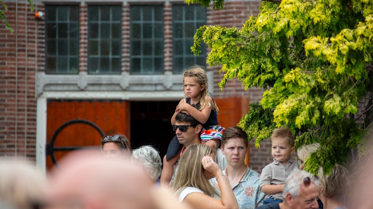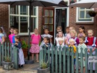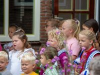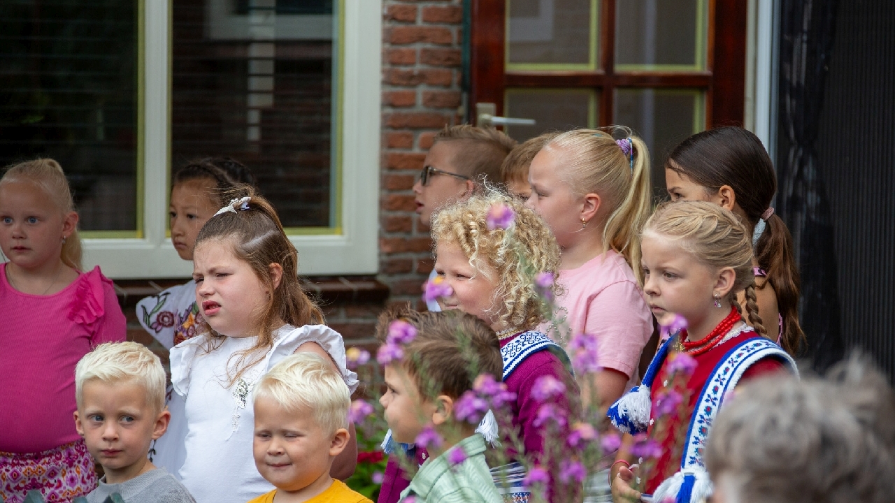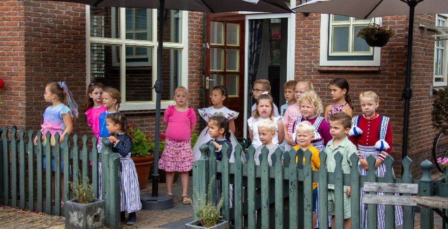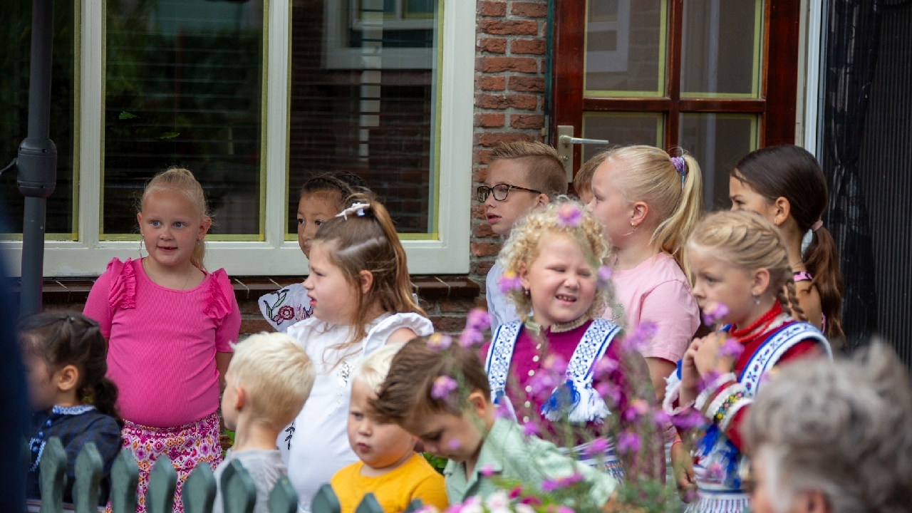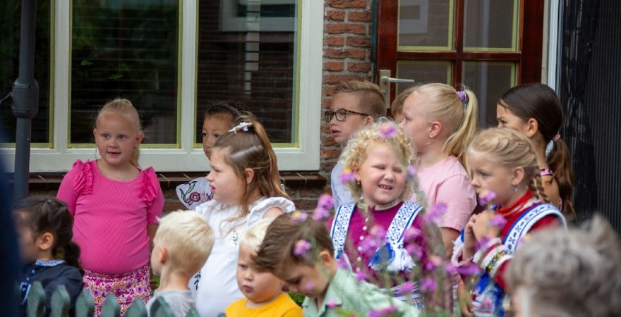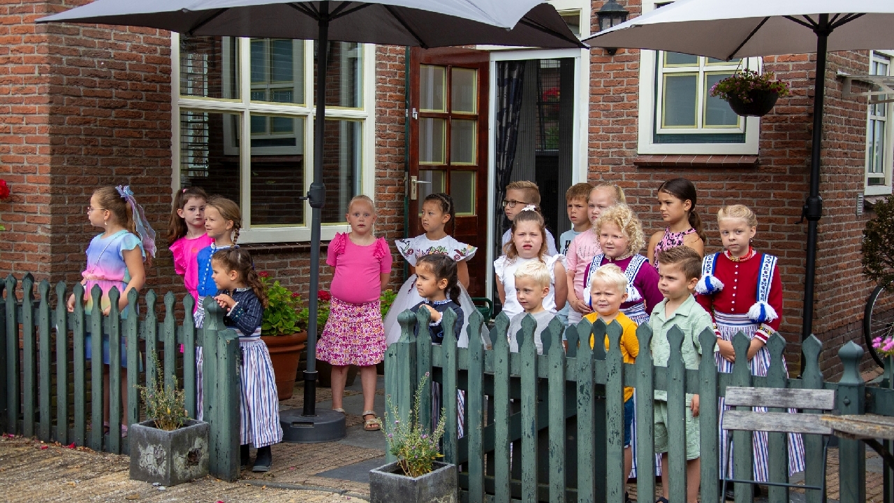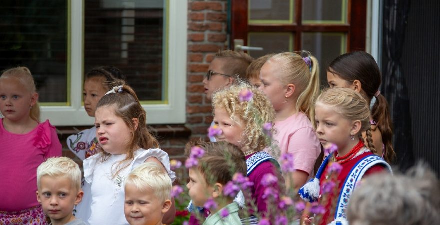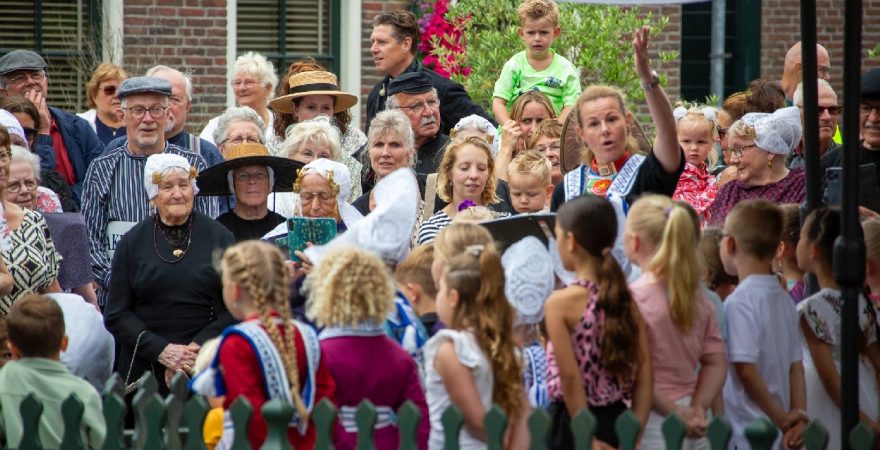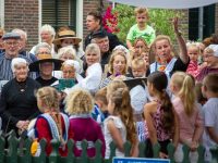 Het plein liep al snel vol met belangstellenden, vooral vanuit de klederdracht optocht en nieuwsgierige voorbijgangers. Jong en oud luisterde aandachtig naar de benjamins van het koor.