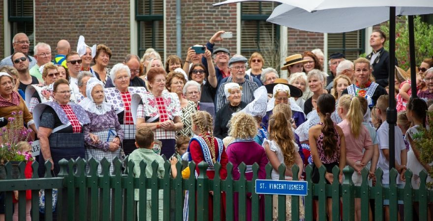 Op de zaterdag van het Volendammer weekend kregen de Zangertjes van Volendam een eervolle plek op het programma. Deels gekleed in traditionele Volendammer dracht zongen zij een aantal bekende liederen op het plein voor de Vincentiuskerk – een locatie die het optreden extra bijzonder maakte.