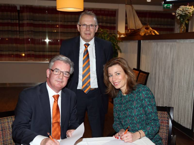 Vrijdagavond werd in de skylounge van de Koningshoek in het Kras-stadion een topsponsorcontract ondertekend tussen Deen Supermarkten en FC Volendam. Door Else Miek Deen werd de 4-jarige overeenkomst ondertekend.