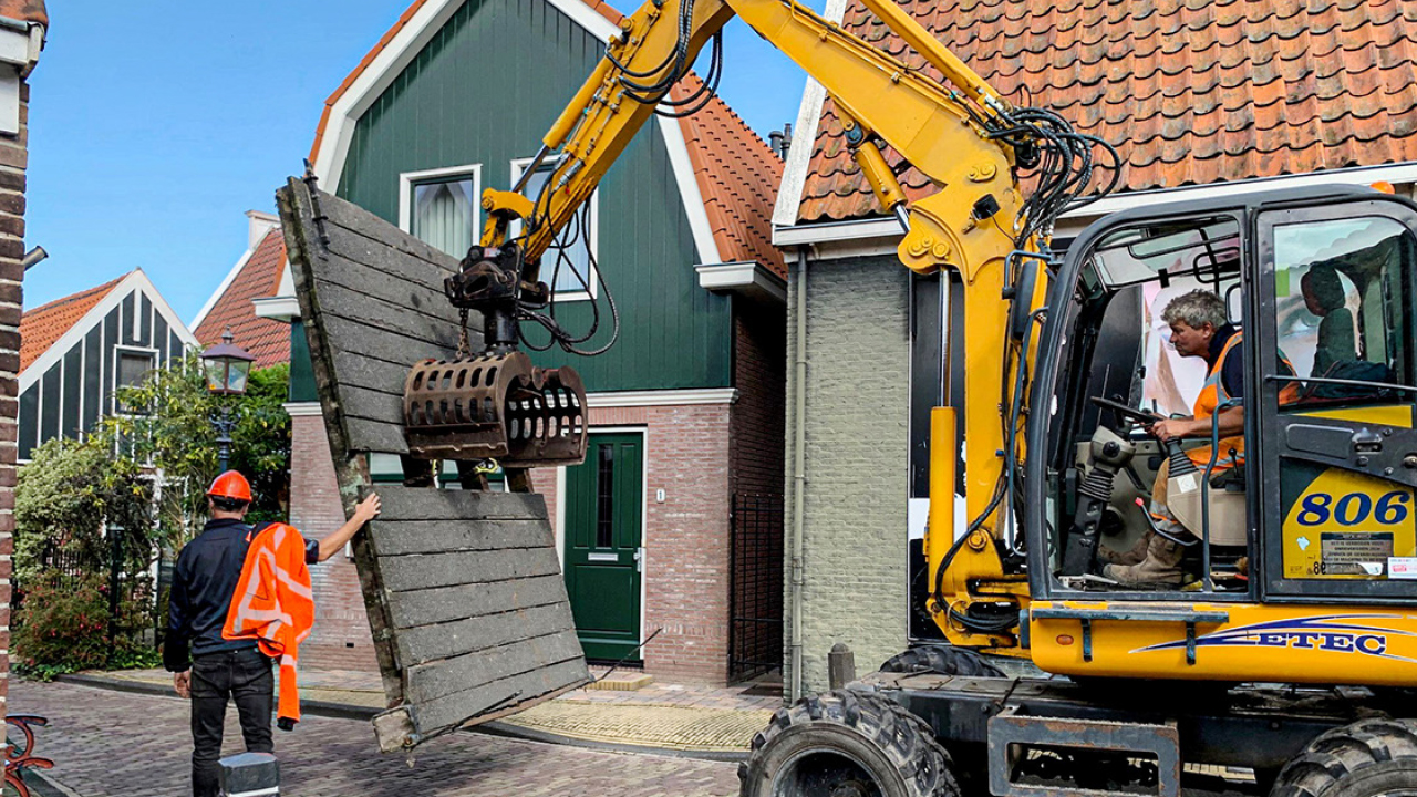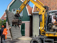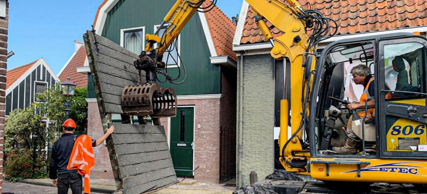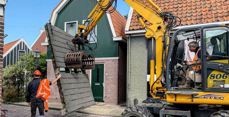 De houten delen zijn in stukken gezaagd en zorgvuldig afgevoerd naar een afgezet werkterrein in het parkje voor de Visserstraat. Van daaruit gaat de brug naar een gespecialiseerd bedrijf dat een volledig nieuw exemplaar vervaardigt, zodat het authentieke karakter en aanzicht behouden blijven.