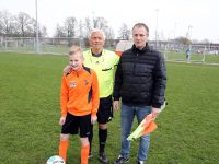 Vlak voor aanvang van de wedstrijd kon van de drie generaties Jonk een foto gemaakt worden op veld 4. Dick is al 20 jaar arbiter en daarvoor was hij 40 jaar lang spelend lid bij de RKAV Volendam.