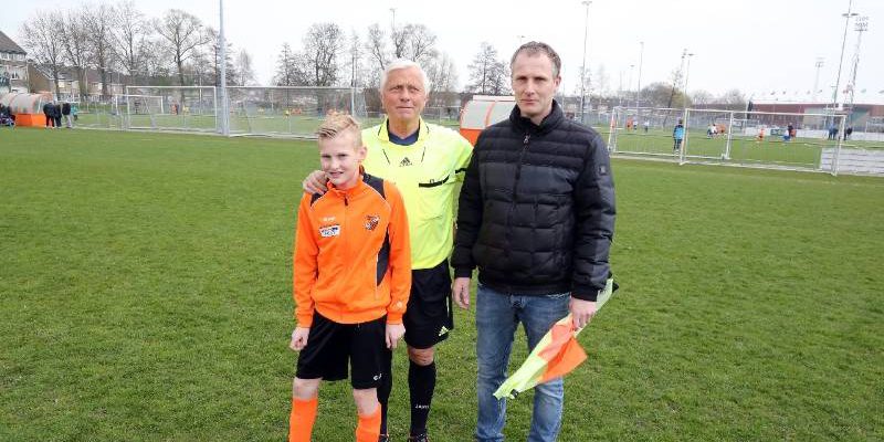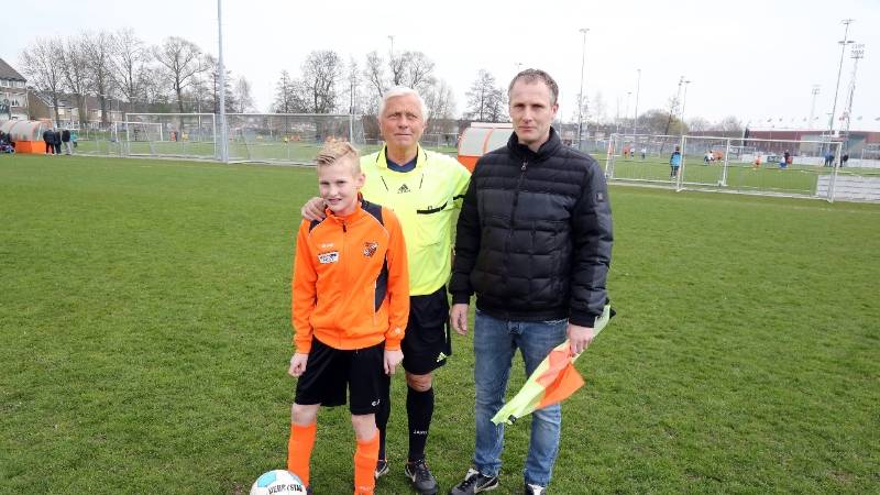 Dick Jonk (71) was scheidsrechter. Zijn zoon Alex (43) was langs de zijlijn actief als vlagger. Kleinzoon Max Jonk (12) speelde in het team van de D9 van de RKAV Volendam, waarin hij geregeld scoort.