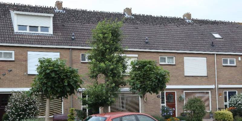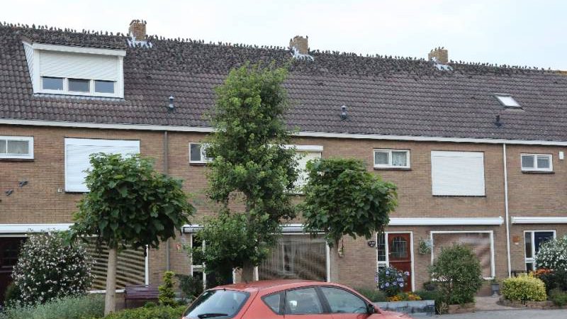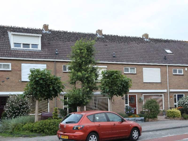 Vrijdagmorgen vroeg zaten op de daken van een rij woningen in de Saturnusstraat duizenden spreeuwen. De vogels hadden hier een tijdelijke rustplaats gevonden.