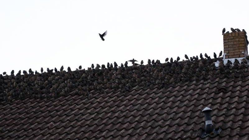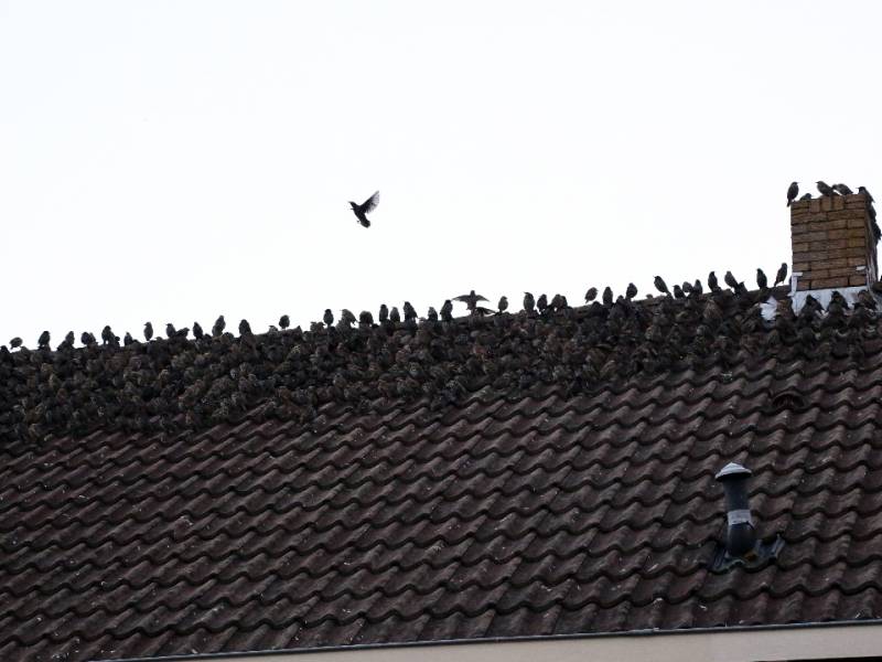 Duizenden spreeuwen zaten op de daken