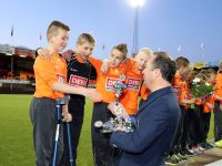Jan Smit en DEEN-directeur Leendert van Eck konden de bekers uitreiken. Eerst waren er bloemen en bekers voor de spelertjes van EVC. Daarna werd de DEEN-Cup overhandigd aan de aanvoerder van Volendam waarna een ereronde volgde.