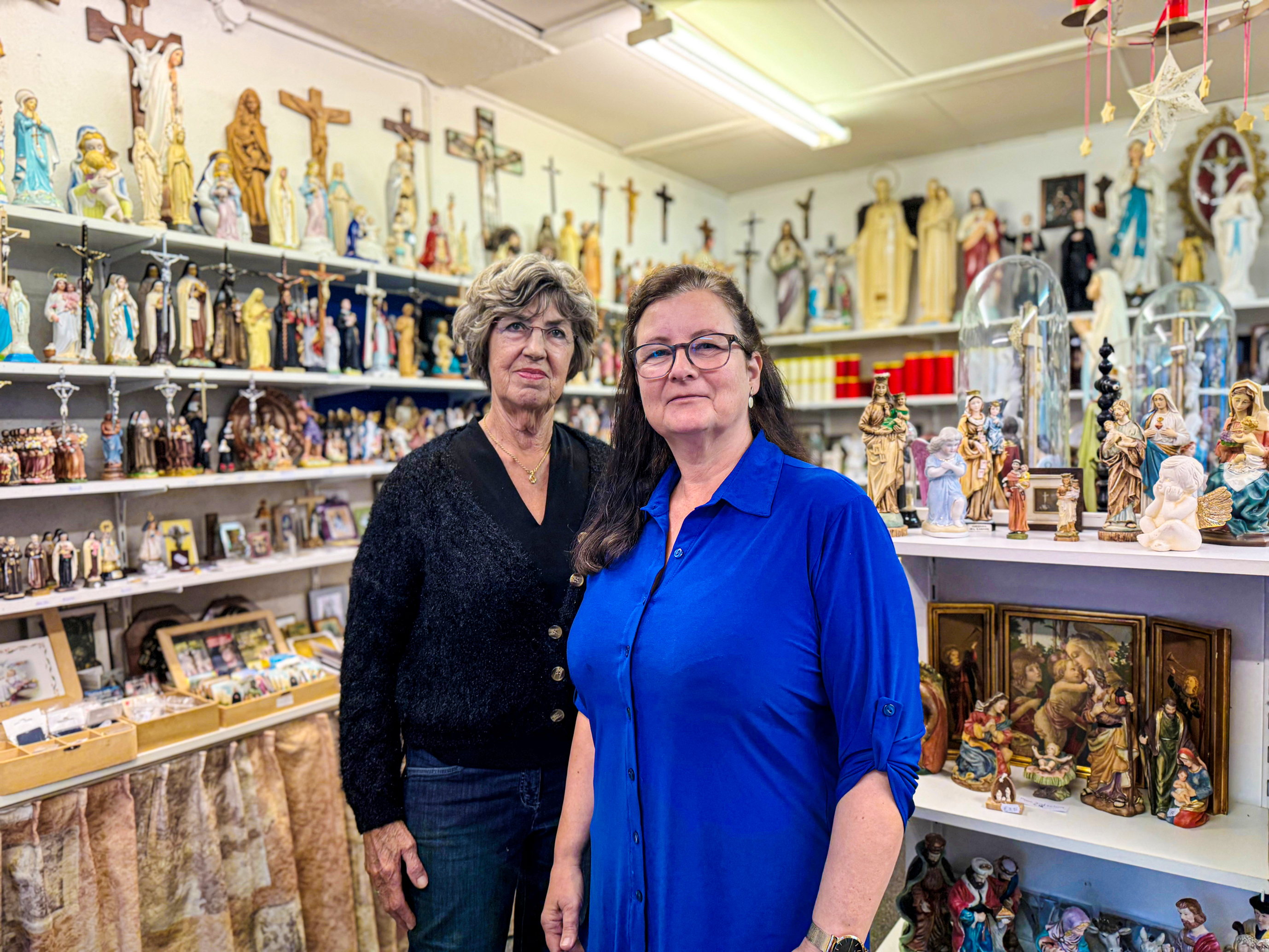 In de smalle straatjes van het Doolhof ligt een winkeltje verscholen waar de tijd lijkt stil te staan. Achter het bescheiden uithangbord van Het Religieuze Boek en Beeld wacht een wereld vol kaarsen, beelden en verhalen. De geur van was en verse koffie hangt in de lucht. En achter de toonbank staan twee vrouwen met dezelfde rust als de heiligen op de planken om hen heen: Karin en Nel Steur.