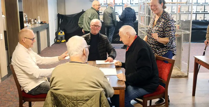 In de woonkamer van een huis aan de Dijk klinkt zacht het gefluit van kanaries. Verder wijst niets in de ruimte op de vogelhobby waaraan Jan Schilder (81) het grootste deel van zijn leven heeft gewijd. Geen kooien, geen bekers, geen foto’s aan de muur: alleen het geluid geeft weg wat zich elders in huis afspeelt. Schilder zit ontspannen op de bank met een kop koffie in de hand. ,,Je hoort rootagaat topazen,” zegt hij. ,,Een moeilijke kleur om te fokken, maar ze zijn schitterend.”