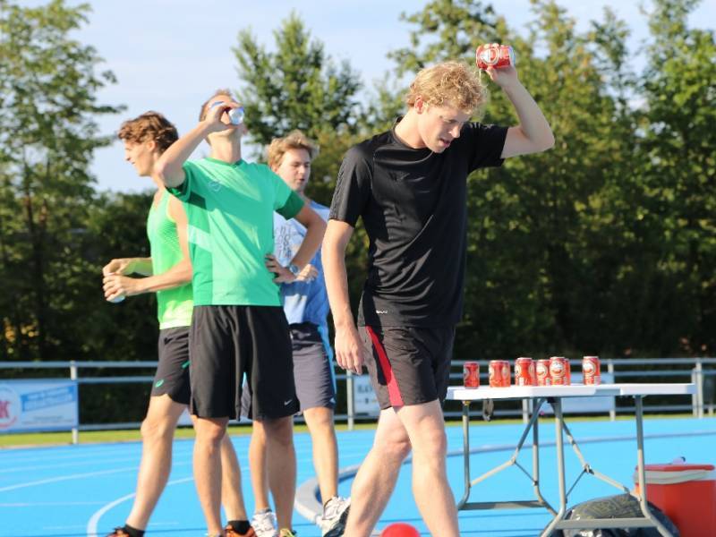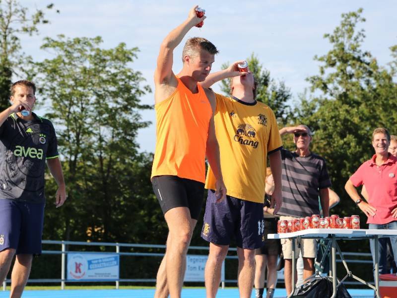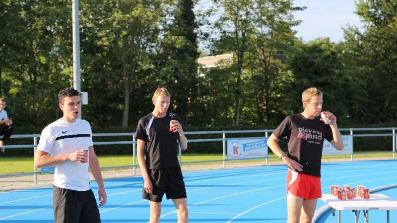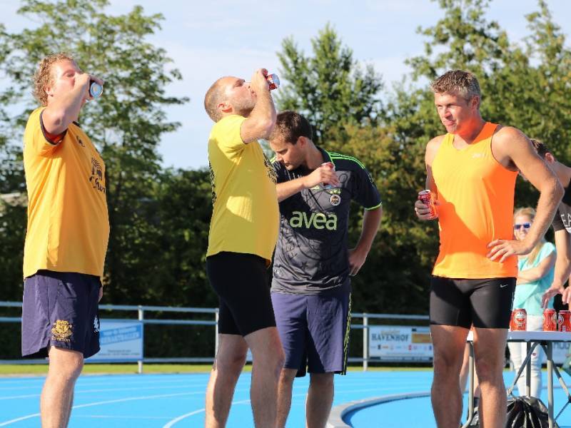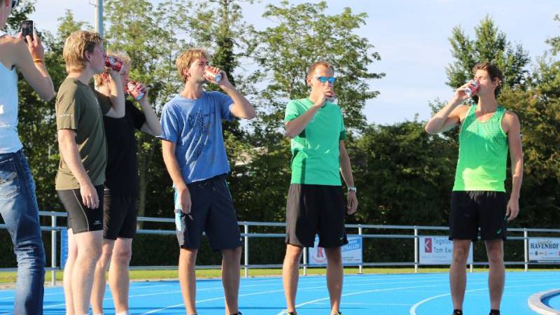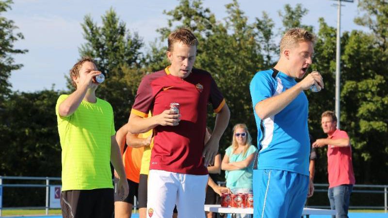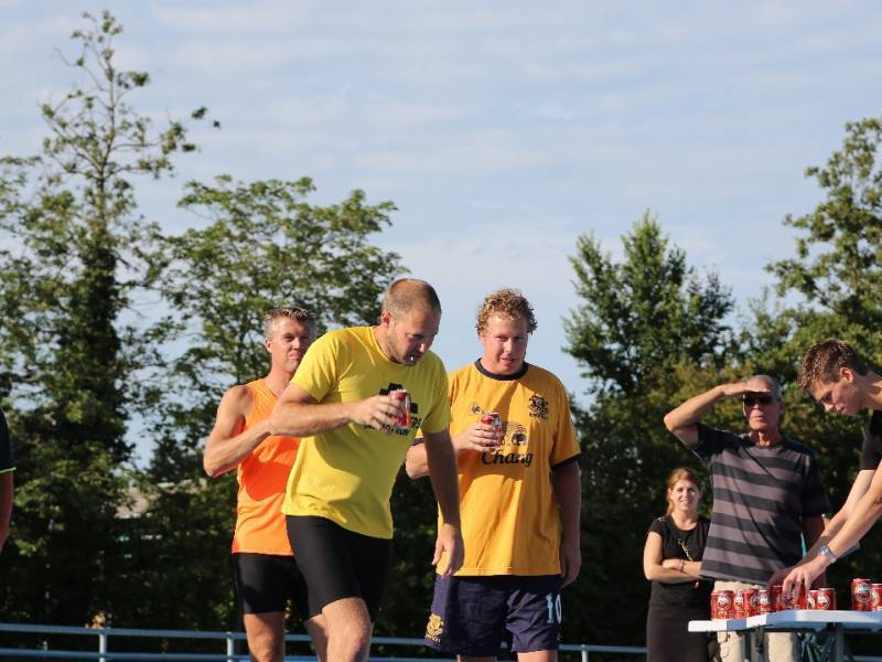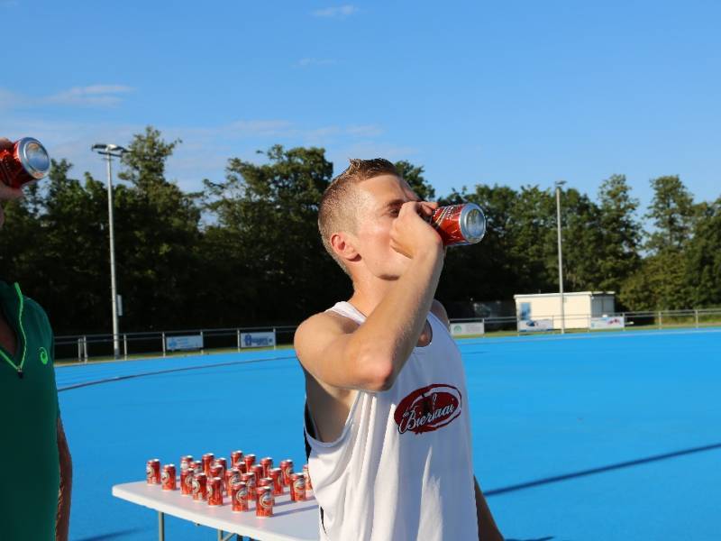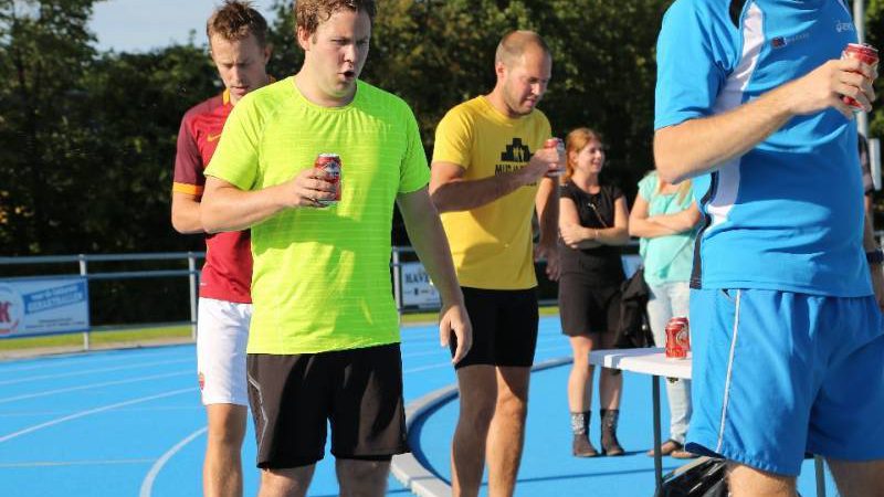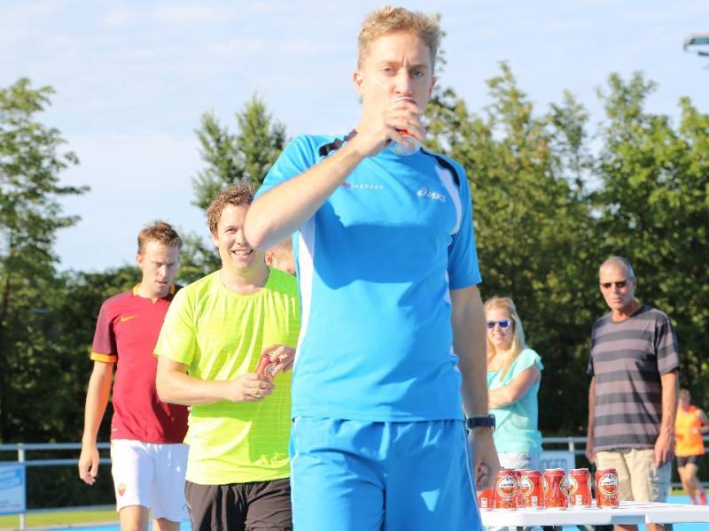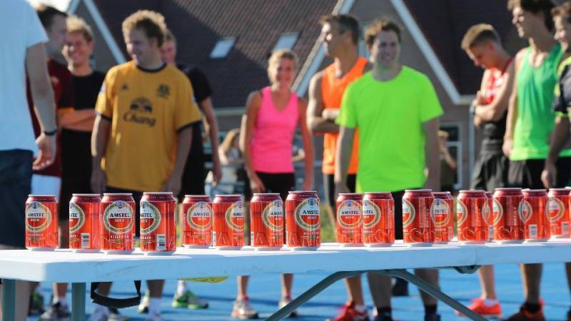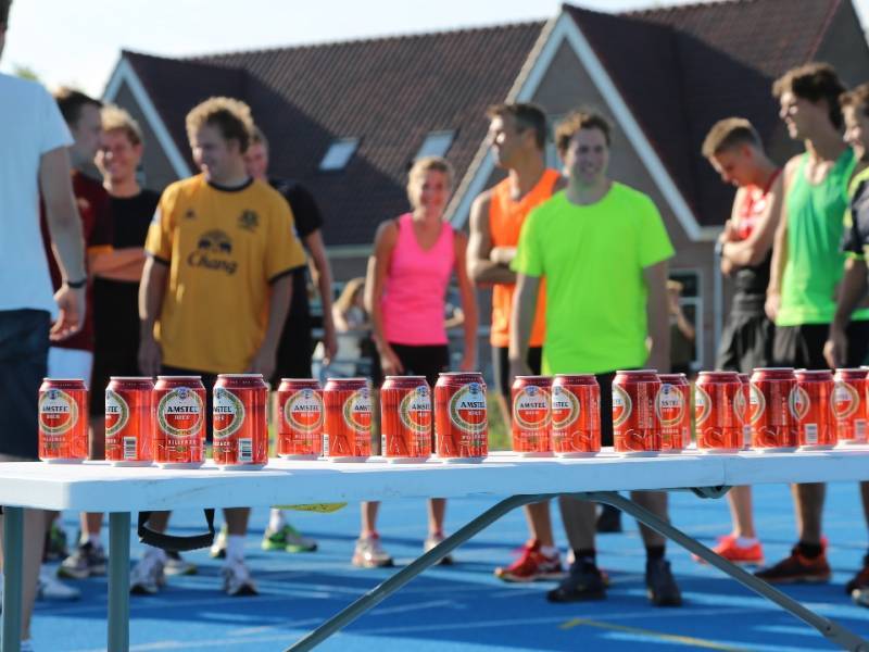 De regels zijn simpel: drink één blikje bier en loop één rondje van 400 meter, en dat 4 keer. Vol enthousiastme gingen de deelnemers in verschillende series van start. Het leverde het publiek een aantal hilarische momenten op.
