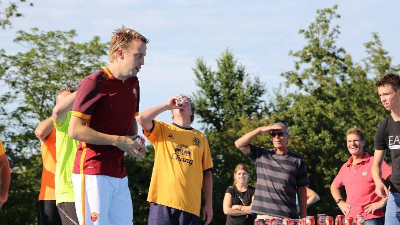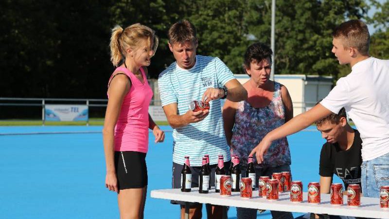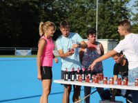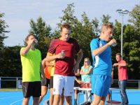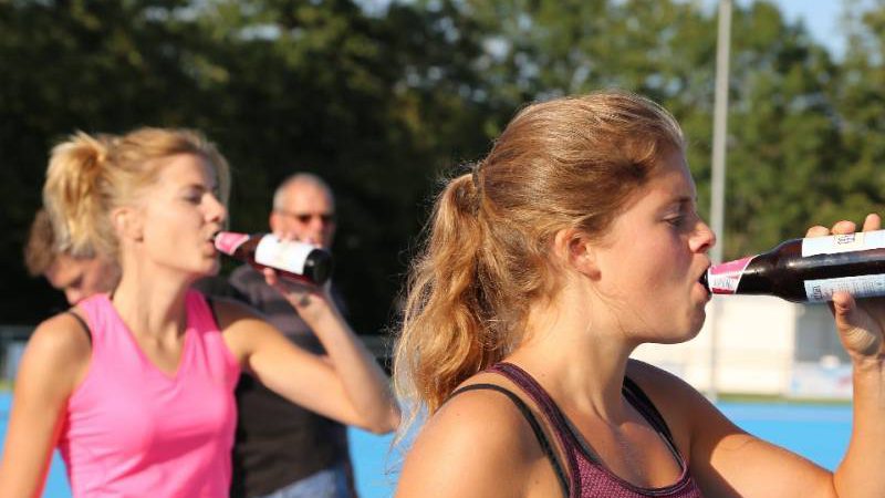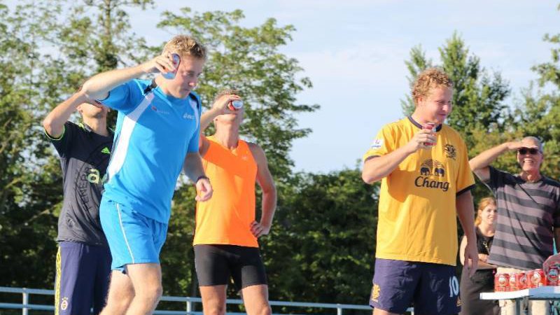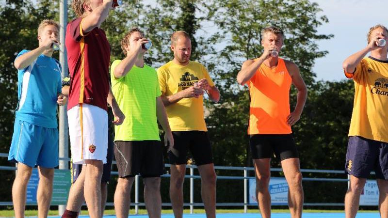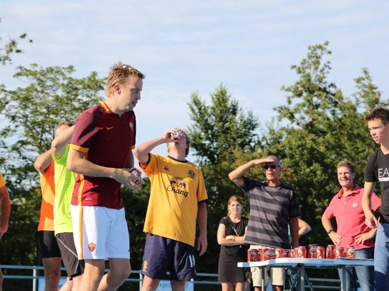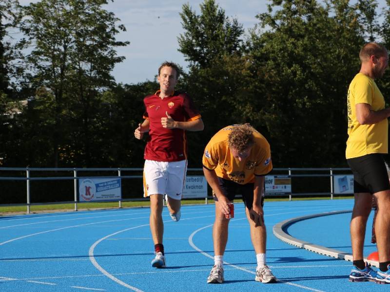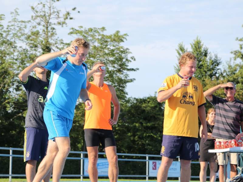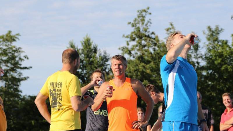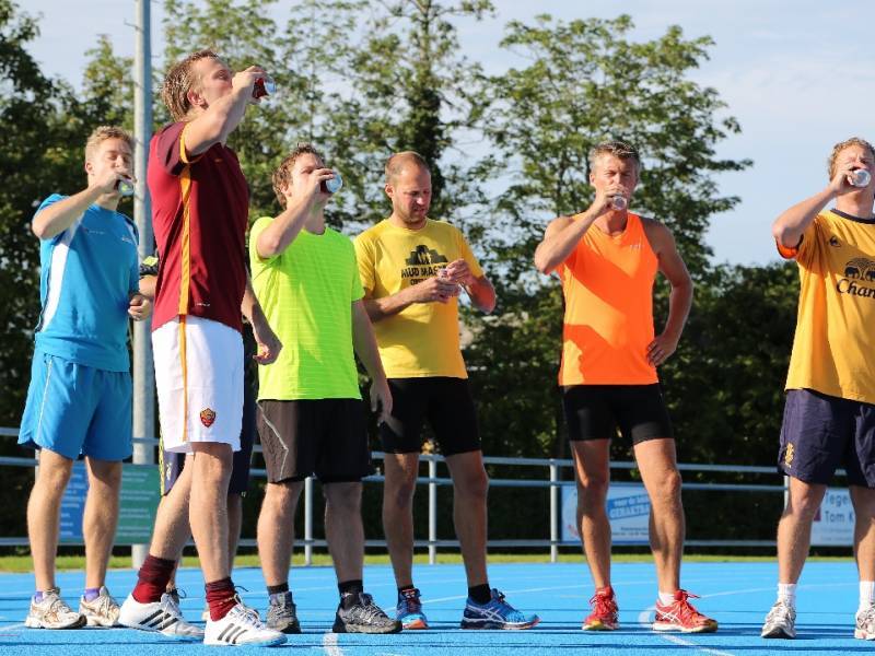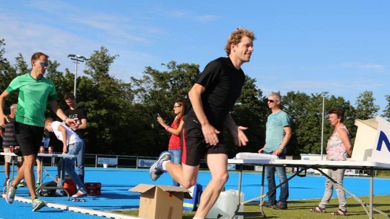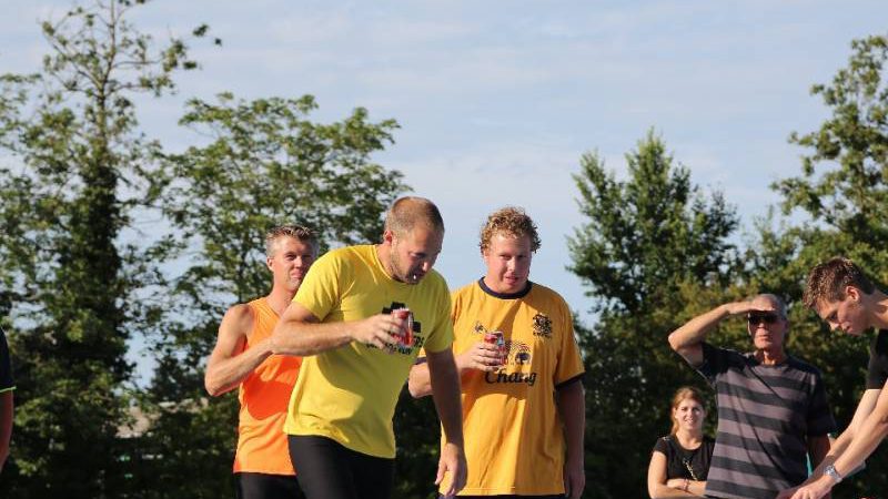 De regels zijn simpel: drink één blikje bier en loop één rondje van 400 meter, en dat 4 keer. Vol enthousiastme gingen de deelnemers in verschillende series van start. Het leverde het publiek een aantal hilarische momenten op.