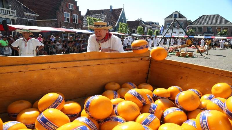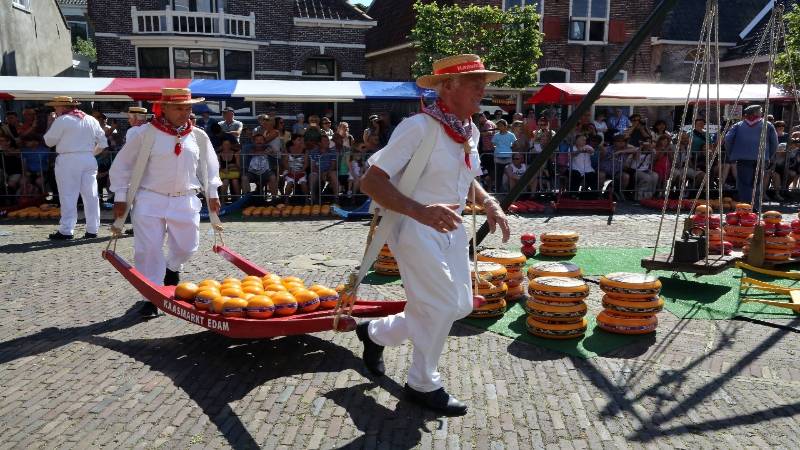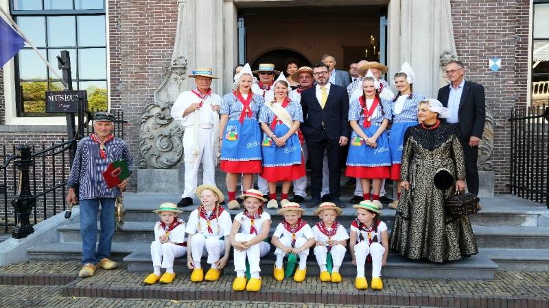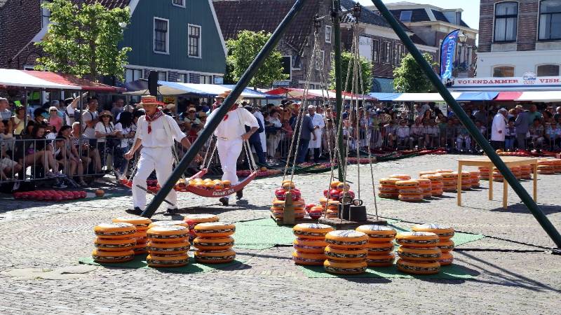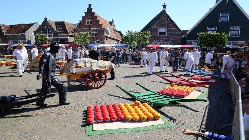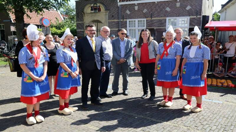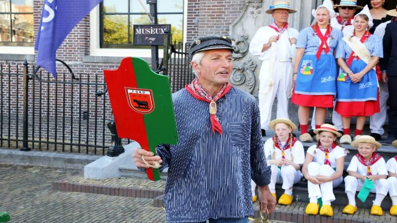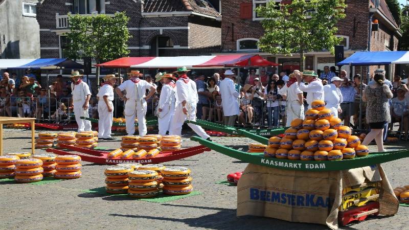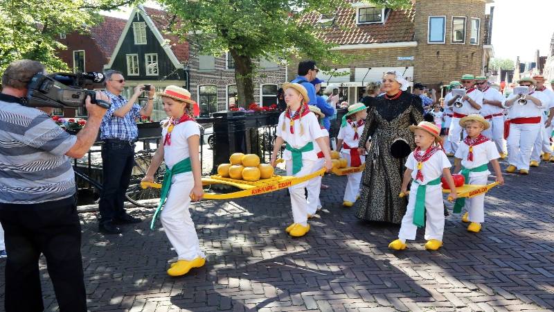 Hij werd in het stadhuis ontvangen door voorzitter Gerro de Boer.Na het “Rondje Edam” met de Kaaskapel voorop, opende Dhr. De Vries om 10.30 uur de Kaasmarkt met het luiden van de bel. Meteen al was er veel belangstelling en vele toeristen beleefden een mooie ochtend in het oude centrum van Edam.