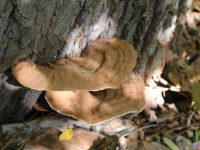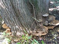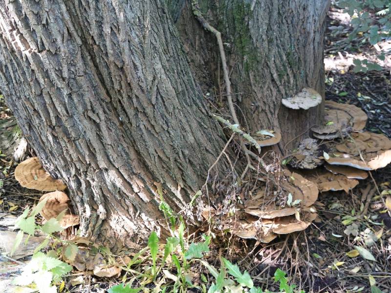 Aan één kant (op de lichtzijde) groeien de elfenbankjes op de stam. Wat dat betreft is de natuur keihard, want over enige tijd zal deze boom in het park gekapt moeten worden.
