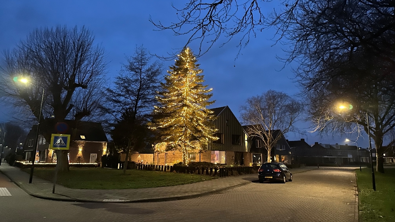 Er werd speciaal omgereden om de boom te bewonderen en zelfs vanaf het Dirk van den Broekplein, enkele honderden meters verderop, was de stralende top al te zien. Namens alle kerstliefhebbers uit onze gemeente: dank aan Roy en Sharon voor het creëren van deze geweldige kerstsfeer.