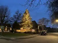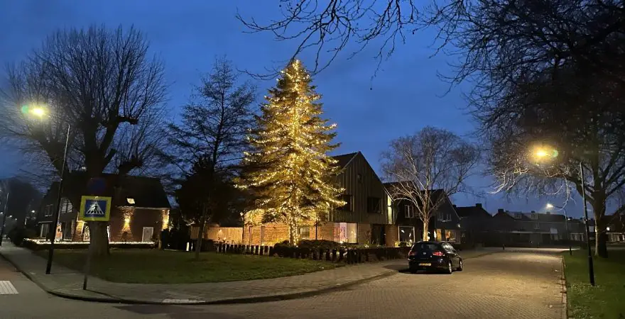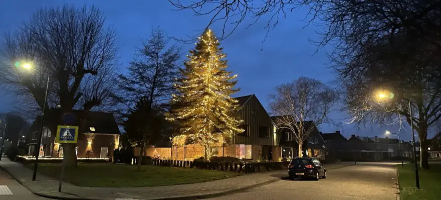 Er werd speciaal omgereden om de boom te bewonderen en zelfs vanaf het Dirk van den Broekplein, enkele honderden meters verderop, was de stralende top al te zien. Namens alle kerstliefhebbers uit onze gemeente: dank aan Roy en Sharon voor het creëren van deze geweldige kerstsfeer.